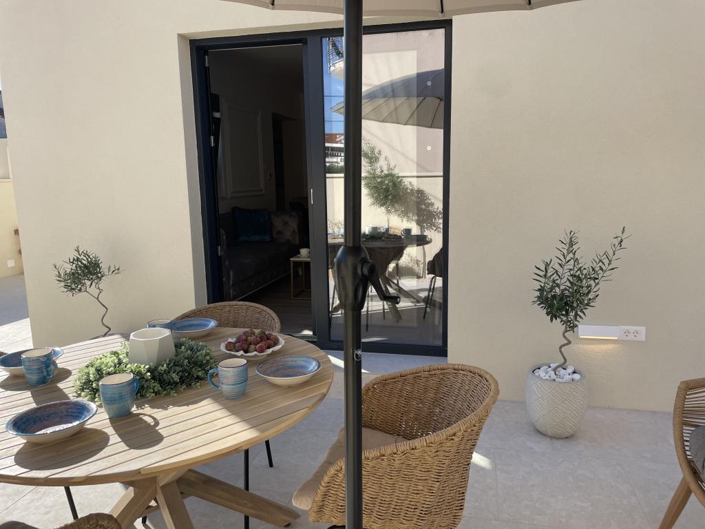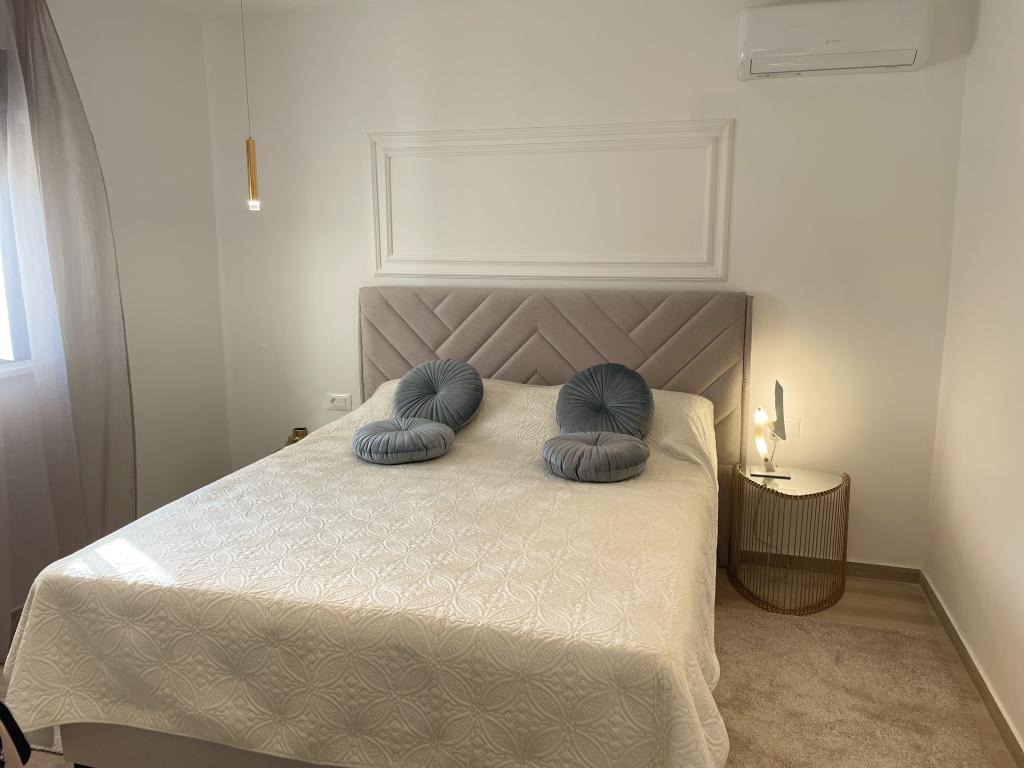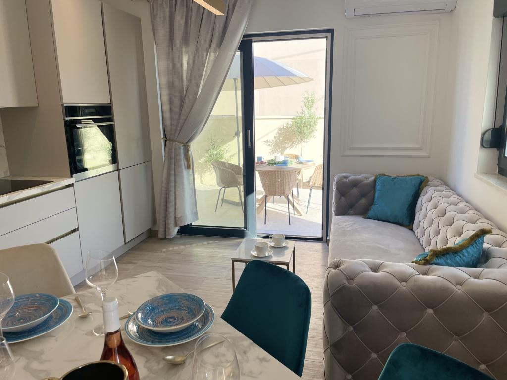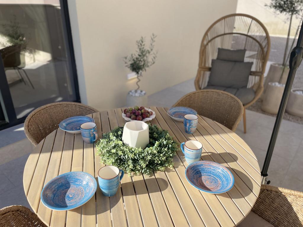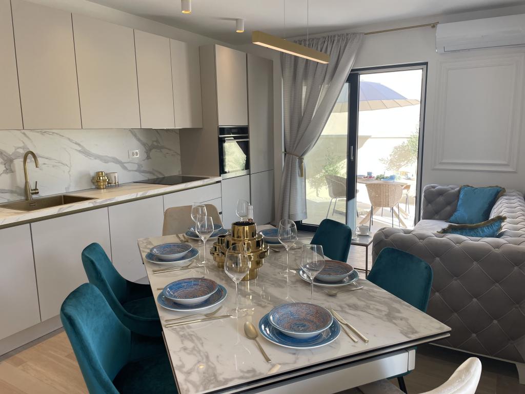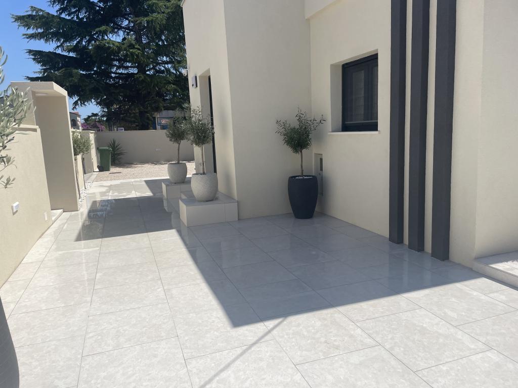 Modernly decorated villa with a large yard and parking. Designer furnished and 10 minutes' walk from the beach, and 5 minutes' walk from the center. The building has 3 bedrooms, is fully air-conditioned and has underfloor heating. The area around the house is arranged for a full-day stay, especially considering the hundred-year-old trees that provide exceptional shade in the hot summer months.