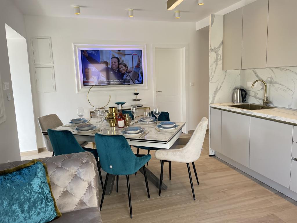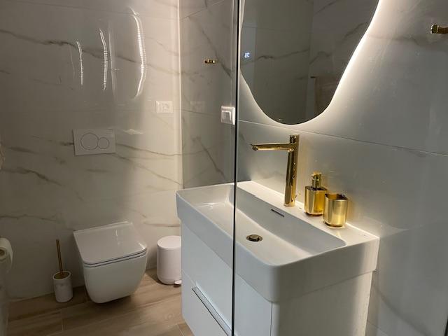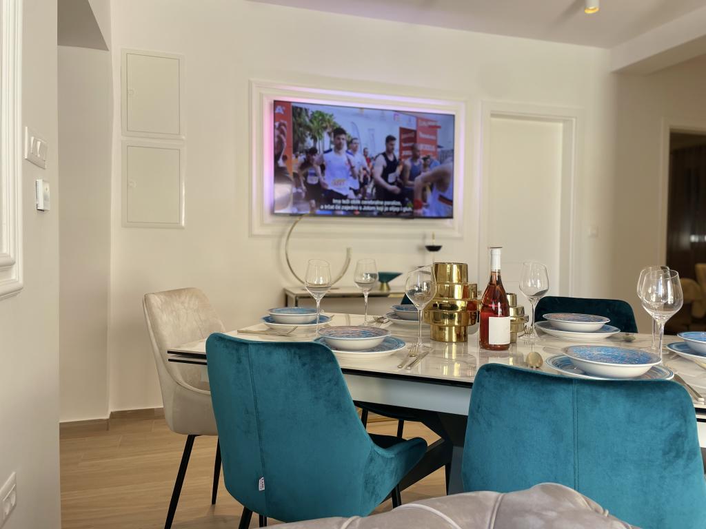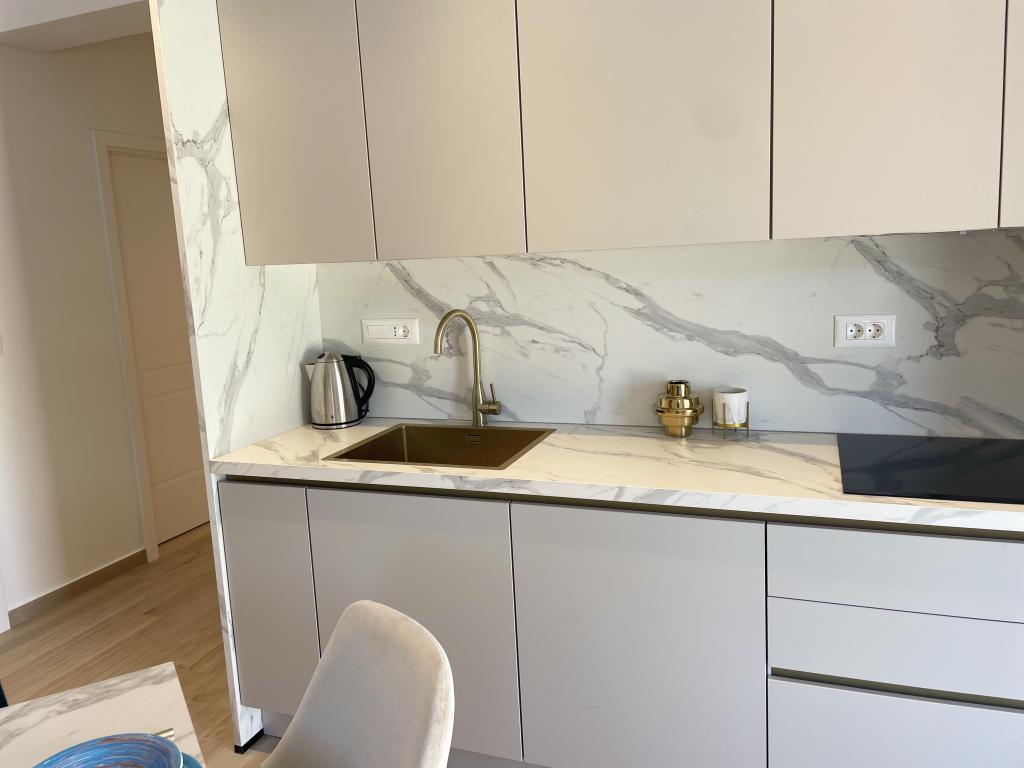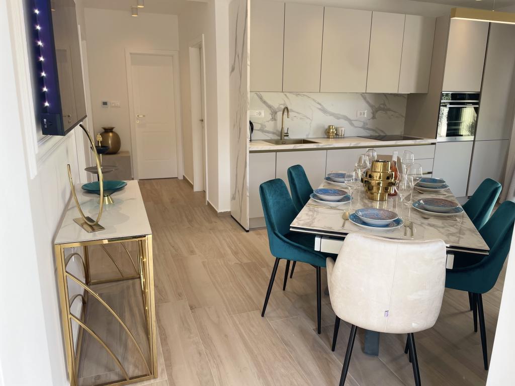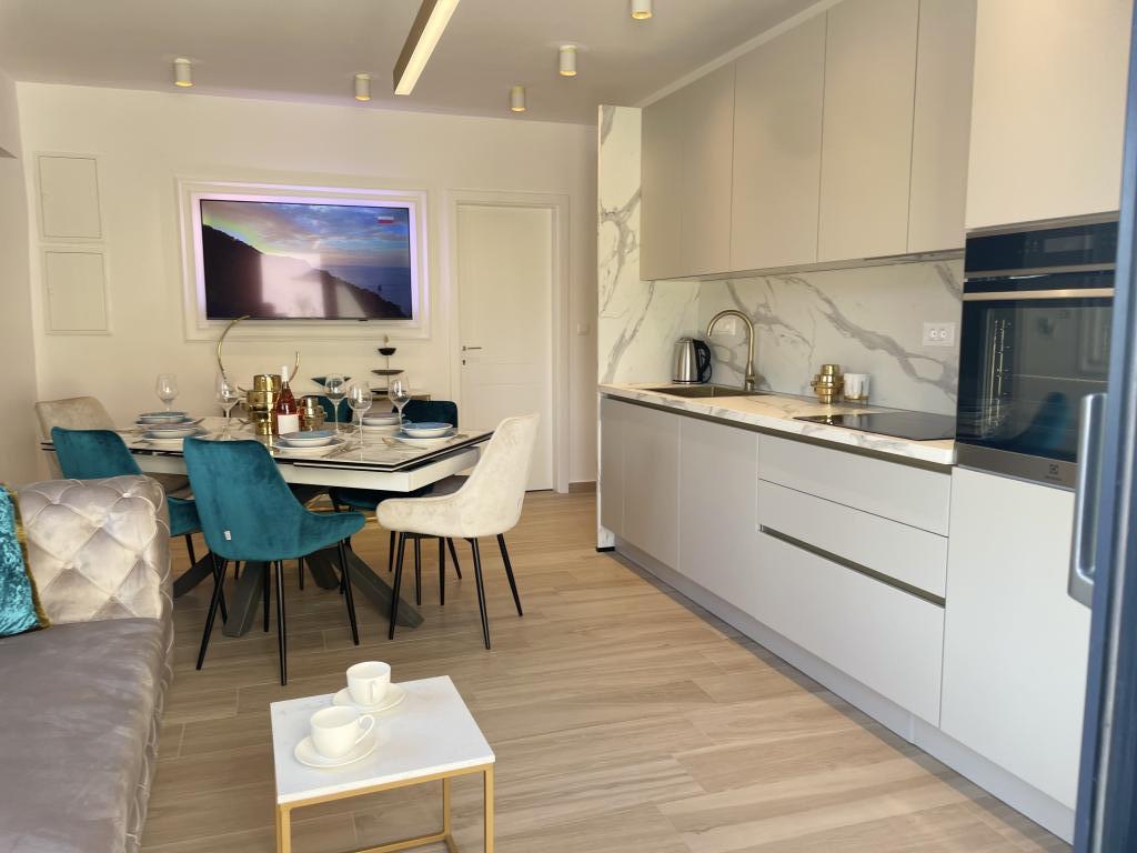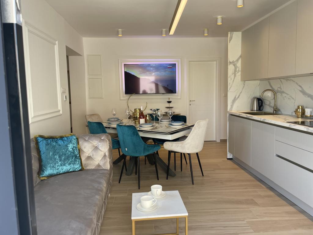 Modernly decorated villa with a large yard and parking. Designer furnished and 10 minutes' walk from the beach, and 5 minutes' walk from the center. The building has 3 bedrooms, is fully air-conditioned and has underfloor heating. The area around the house is arranged for a full-day stay, especially considering the hundred-year-old trees that provide exceptional shade in the hot summer months.