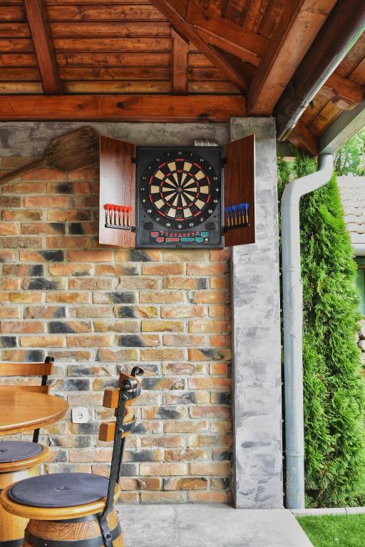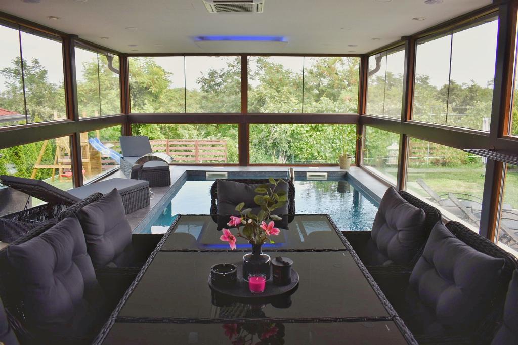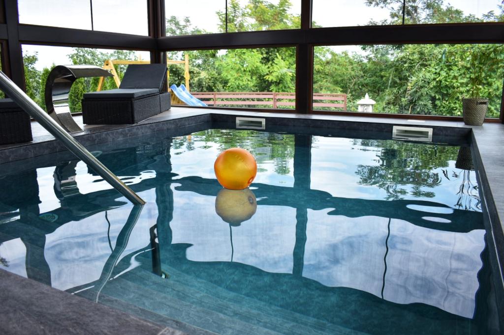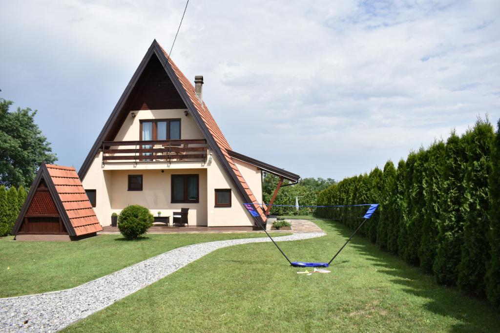 Villa Edl is an elegant, luxuriously furnished holiday home categorized with 5 stars. It is located in Aljmaš (25 km from the city of Osijek). The facility has an indoor heated swimming pool 5x4 m, a wellness oasis with an infrared sauna, a fully equipped kitchen, a living room with a fireplace, a closed terrace with a dining table, a room for washing and drying clothes, two bedrooms with double beds, and in each room there is an additional bed (4+2), two bathrooms. In the summer months, guests can enjoy themselves on the sunbed. The facility has a landscaped and fenced yard, free parking, one parking space is covered. In the Rošilj cottage, guests have access to a wood/coal grill and a gas grill. For the youngest guests, the facility has a children's playground with a slide and swings, darts, badminton, etc. Bed linen, towels, robes, slippers, cosmetics for personal hygiene are available to guests. Pet friendly Capacity: 6 persons Self check-in WI-FI