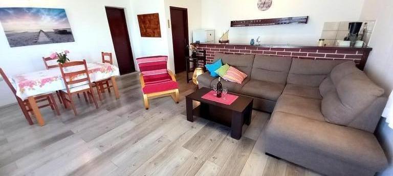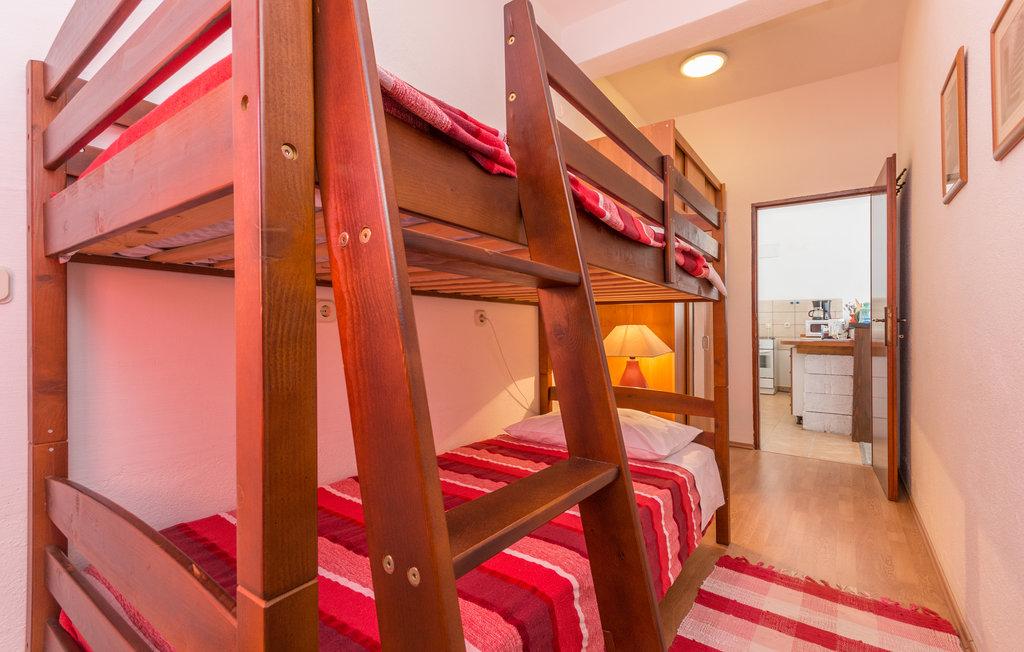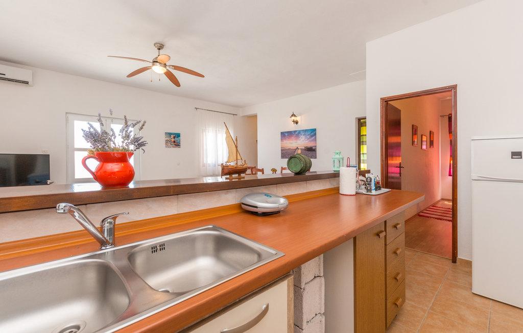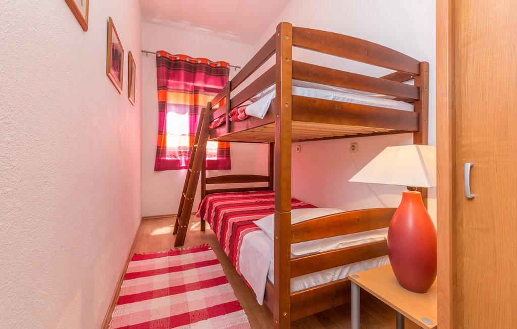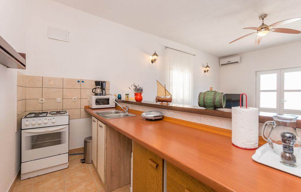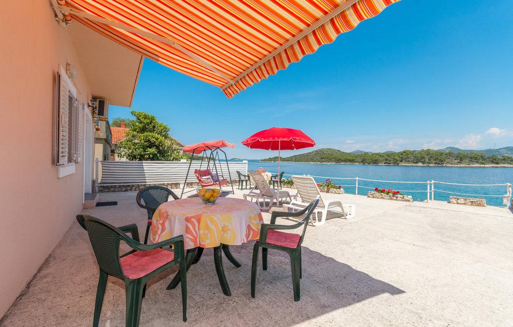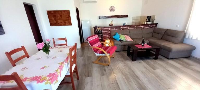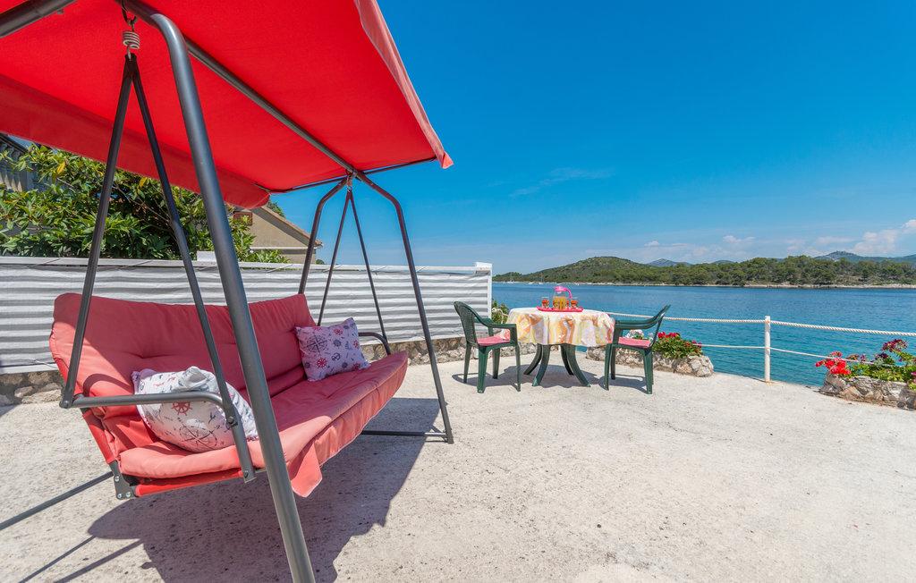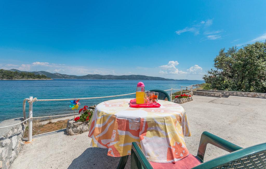 A spacious terrace with comfortable deck chairs and parasols offering a beautiful view of the sea is an excellent invitation to spend your holiday here. Relax with your family in this pleasant accommodation. Mali Iž, in the middle channel between Ugljan and Dugi Otok, is surrounded by other islets. Ferry and boat lines allow for quick arrival. The restaurants serve good local wines and delicious Dalmatian cuisine. The holiday home consists of a spacious common area, living room, kitchen and dining room - open space, two bedrooms and a bathroom. One bedroom has a double bed measuring 160×200 cm, and the other bedroom has a bunk bed measuring 90×200 cm. The house has a spacious terrace with a sea view 10 meters from the sea. There is a fireplace with a barbecue next to the house. Free parking is available on a public area near the accommodation.