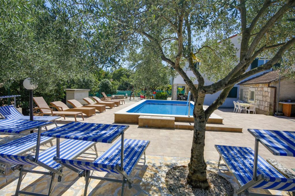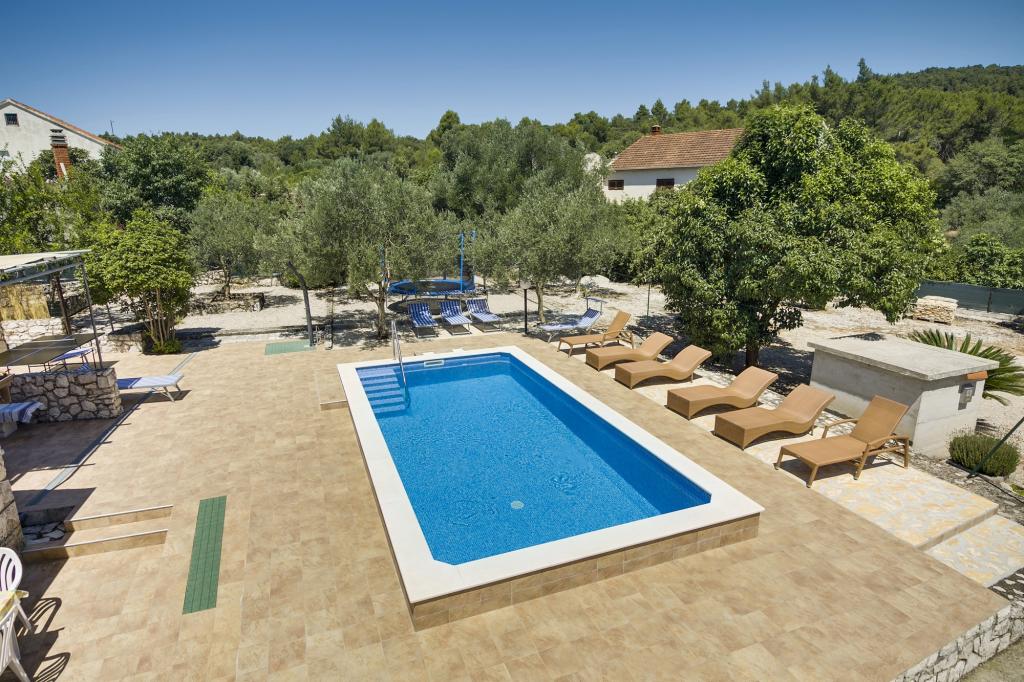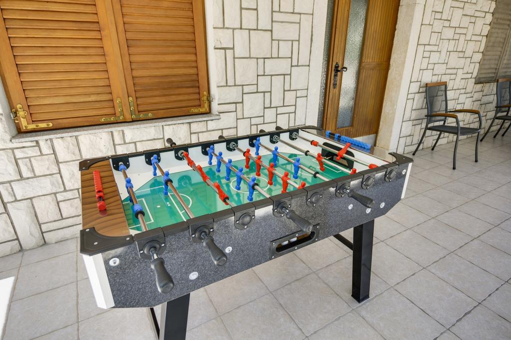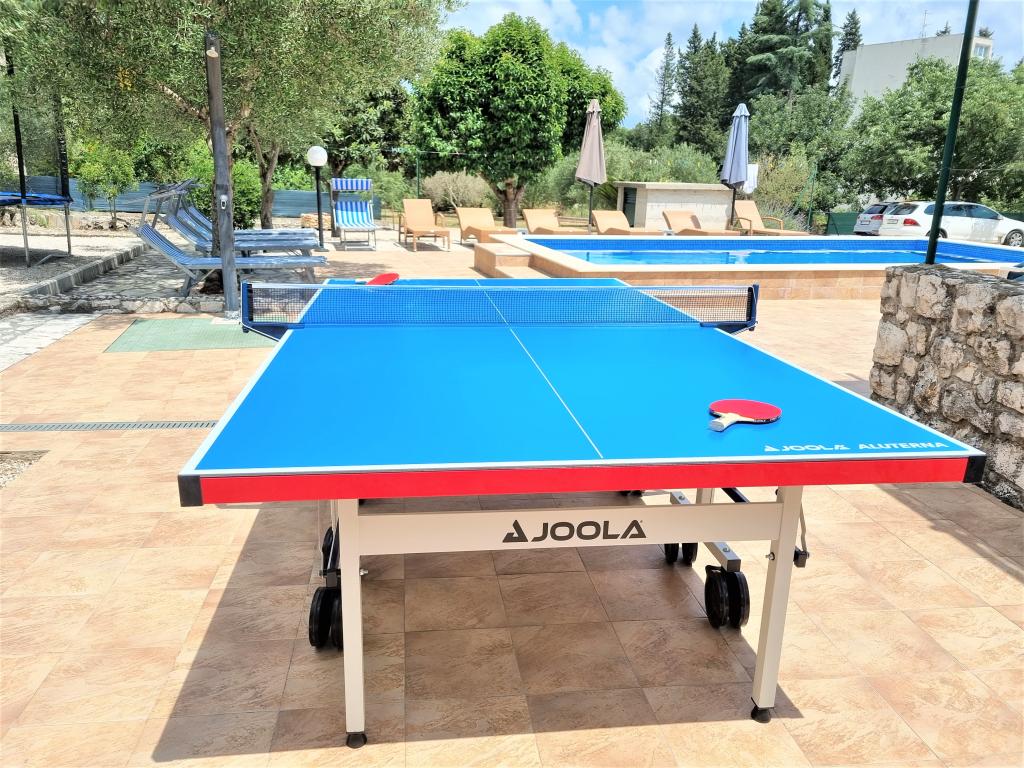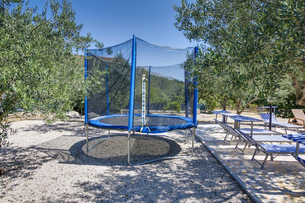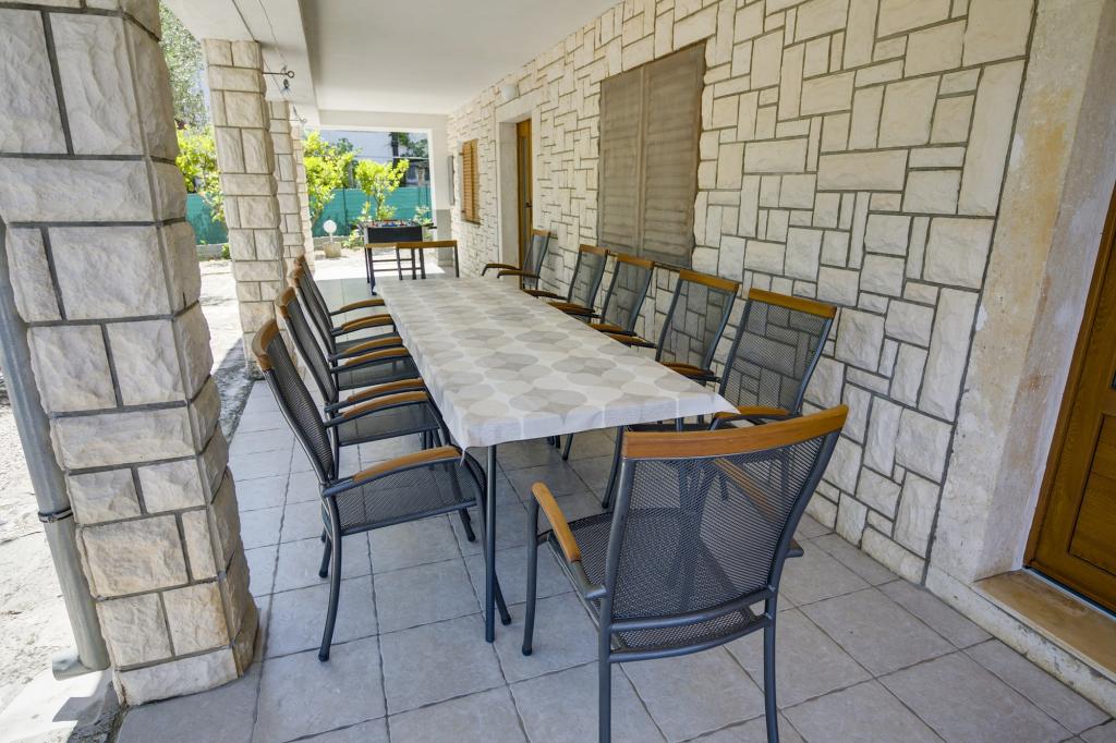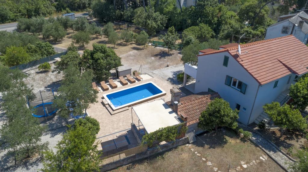 Villa Ivanka is located in the suburbs of the town of Korčula on a spacious plot of 3500m2. and offers a large parking lot. During your stay, you will be the only guests in the house, the host is not present during your stay. The easiest way to get to the beach, which is 300m away, is on foot. This house offers 193m2 of space for a maximum of 10 plus 2 people. The house consists of two apartments, one on the first floor with four bedrooms and a kitchen, and the other on the ground floor with one bedroom, bathroom and kitchenette. Each room is spacious, connected with a bathroom, terrace and air conditioning. In front of the house there is a 24m2 outdoor pool with a depth of 1.65m, next to which there are 11 quality deck chairs, table tennis, professional table football and a trampoline. Next to the pool there is a summer kitchen for food preparation, next to the kitchen there is an outdoor grill for pleasant socializing and relaxation. It is allowed to bring a pet to the accommodation unit. The town of Korcula is a few minutes' pleasant walk by the sea.