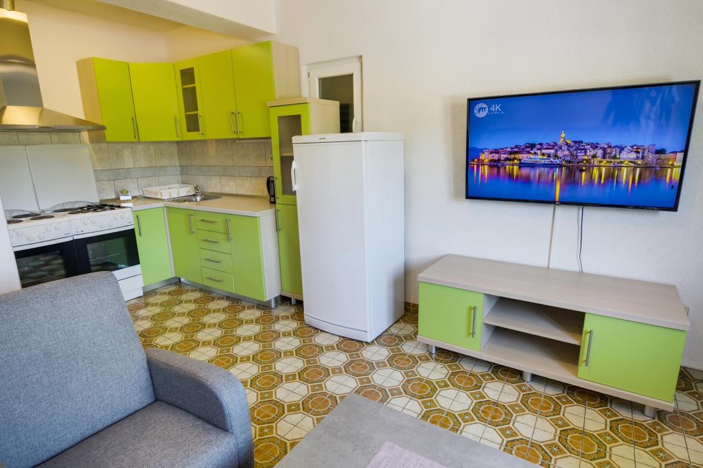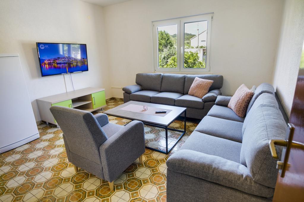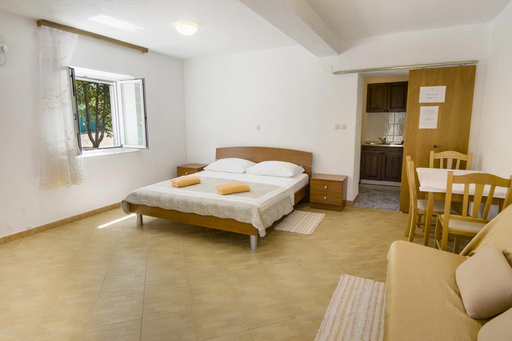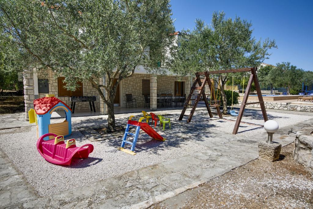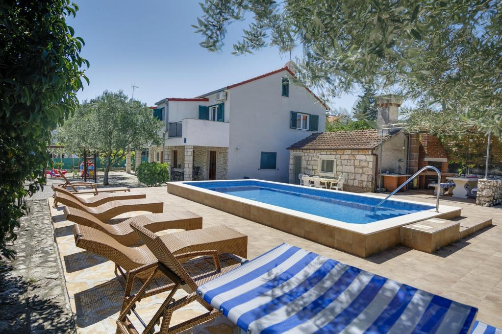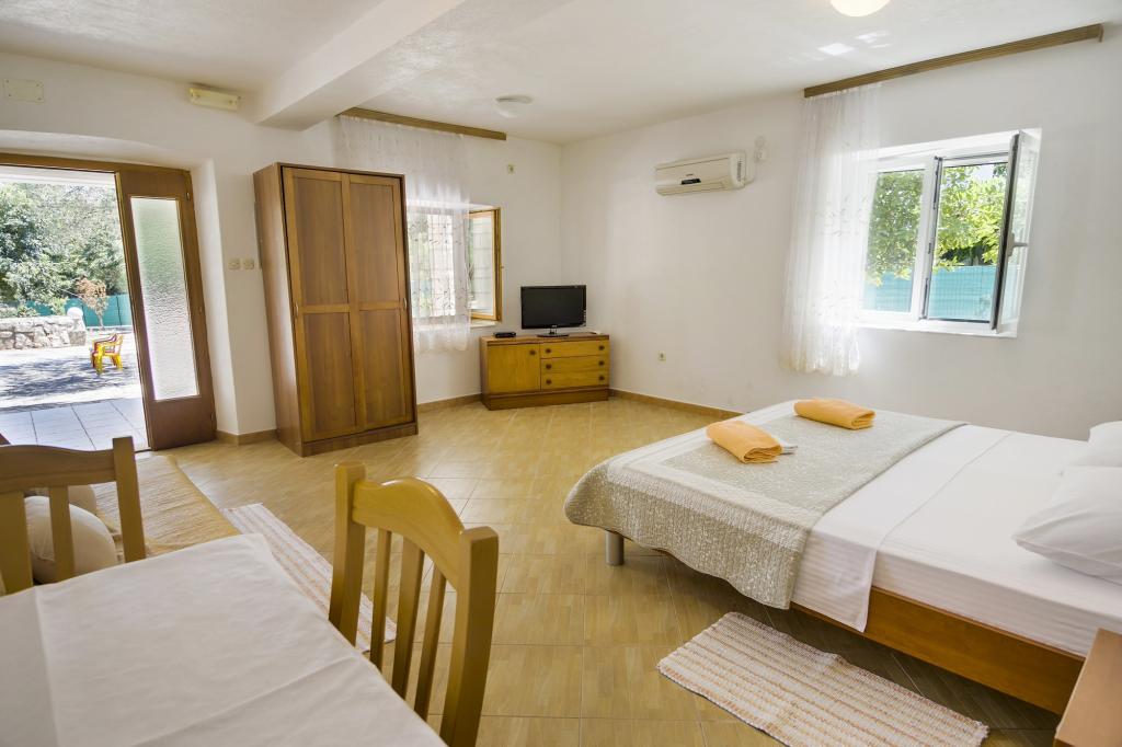 Villa Ivanka is located in the suburbs of the town of Korčula on a spacious plot of 3500m2. and offers a large parking lot. During your stay, you will be the only guests in the house, the host is not present during your stay. The easiest way to get to the beach, which is 300m away, is on foot. This house offers 193m2 of space for a maximum of 10 plus 2 people. The house consists of two apartments, one on the first floor with four bedrooms and a kitchen, and the other on the ground floor with one bedroom, bathroom and kitchenette. Each room is spacious, connected with a bathroom, terrace and air conditioning. In front of the house there is a 24m2 outdoor pool with a depth of 1.65m, next to which there are 11 quality deck chairs, table tennis, professional table football and a trampoline. Next to the pool there is a summer kitchen for food preparation, next to the kitchen there is an outdoor grill for pleasant socializing and relaxation. It is allowed to bring a pet to the accommodation unit. The town of Korcula is a few minutes' pleasant walk by the sea.