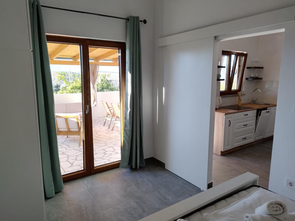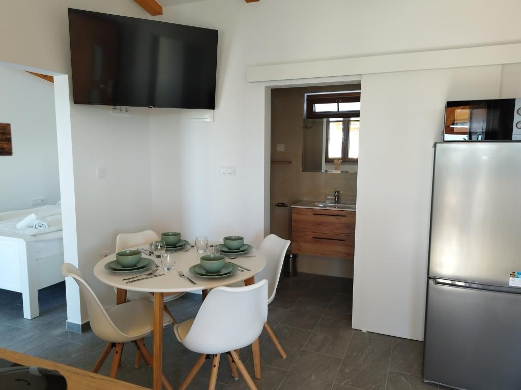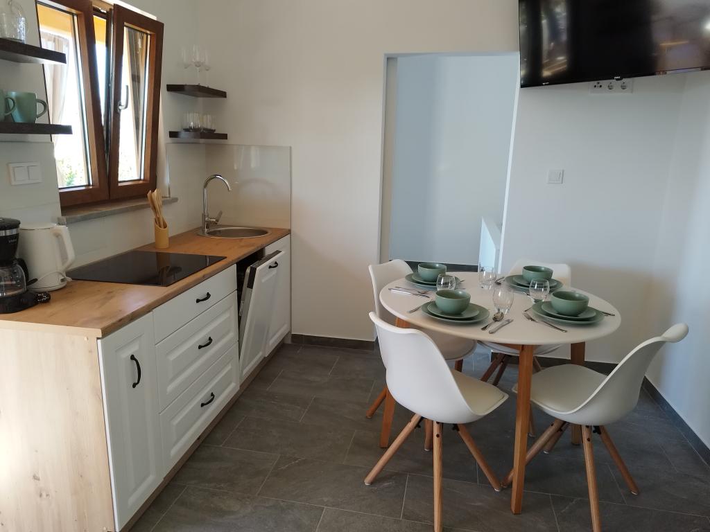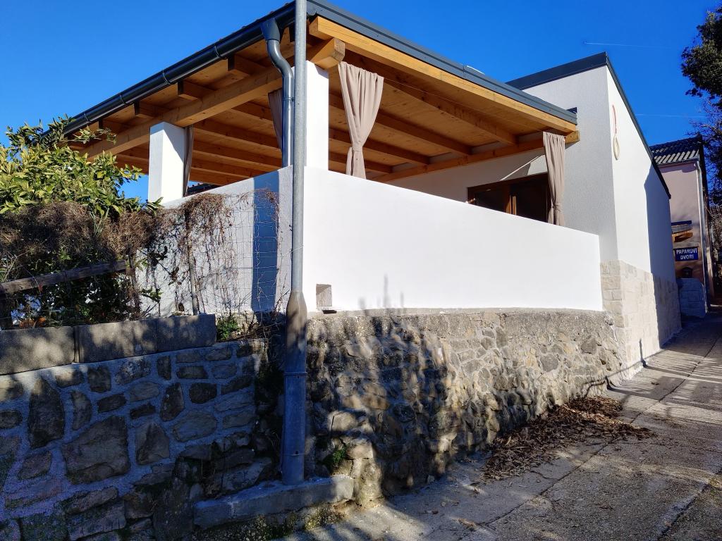 Welcome to the brand new renovated Holiday House “Stipe” located on a quiet hill above Lopar – the perfect place to relax, away from the summer crowds, yet close to everything. Take a proper break and relax. This charming newly renovated house covers 45 m² of interior space with two comfortable bedrooms, an elegant bathroom and a modernly equipped kitchen that includes a dishwasher, microwave, refrigerator and all necessary utensils. The dining room and living room with TV offer a pleasant space for socializing. Each room is air-conditioned for your maximum comfort. In front of the house there is a spacious covered stone terrace (70 m²) with a dining table, seating and barbecue – an ideal place for morning coffee, a long breakfast, a book in hand or evening socializing with the sunset.