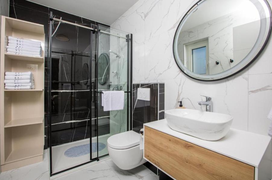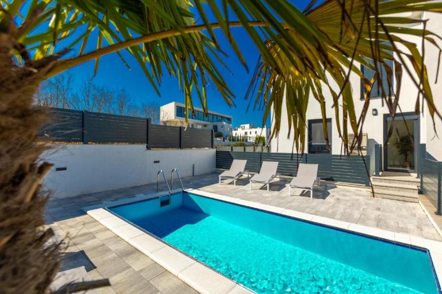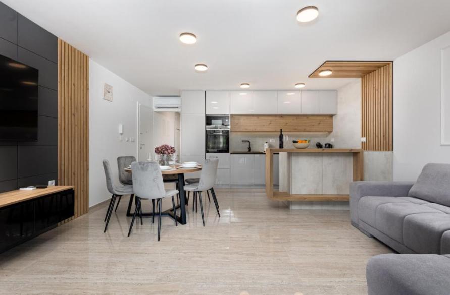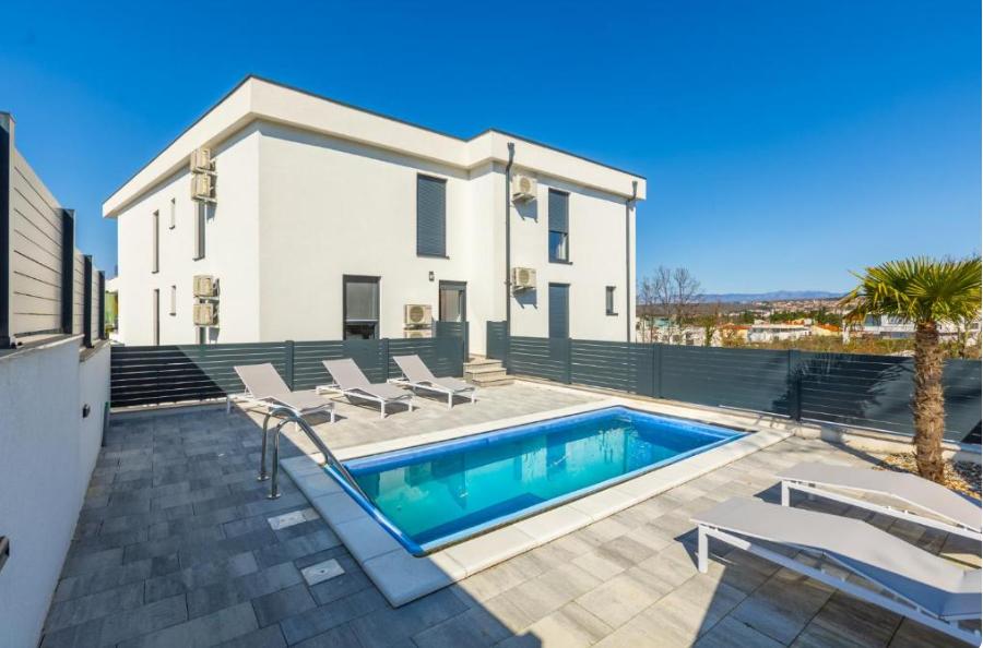Apartment Aura is located in Malinska on the island of Krk, just 300 m from the sea, and is ideal for a relaxing holiday. The modern and spacious apartment consists of three bedrooms, a living room, a fully equipped kitchen, and a balcony and terrace with sea views. Guests have access to WiFi, air conditioning, a private pool and parking. Nearby are numerous beaches and attractions such as the center of Krk and Krk Castle (13 km), the Košljun Monastery (16 km) and the Punat Marina (17 km), which makes this location the perfect combination of peace and amenities.