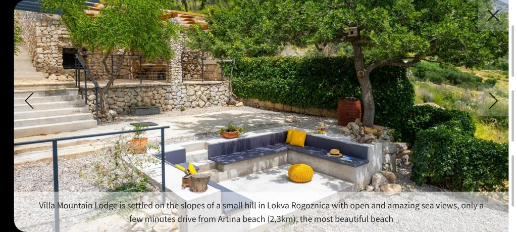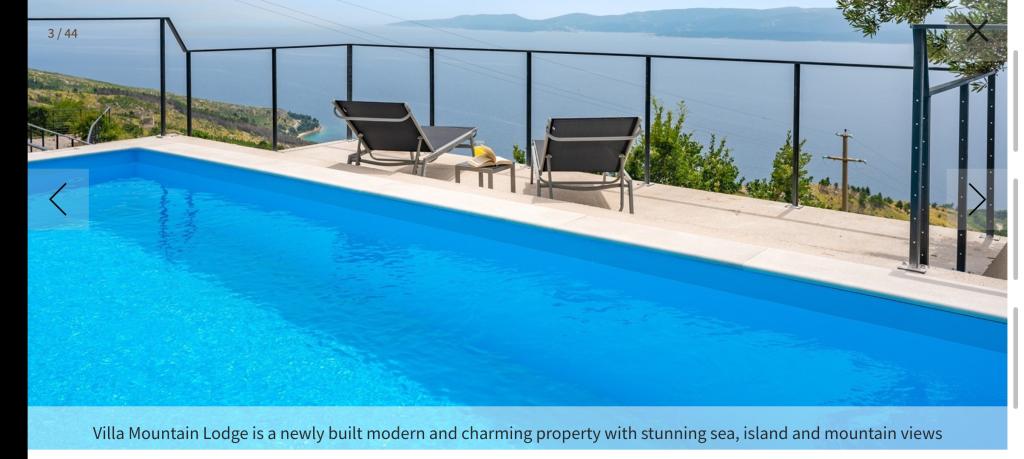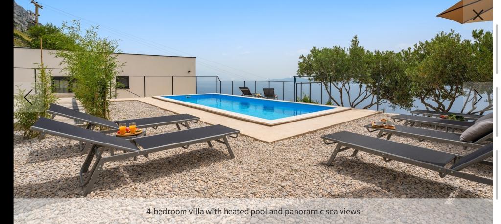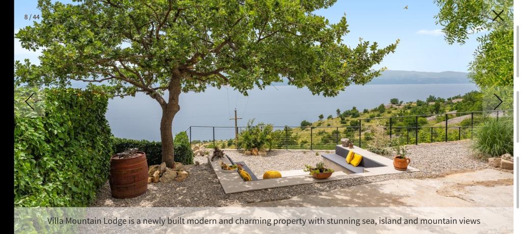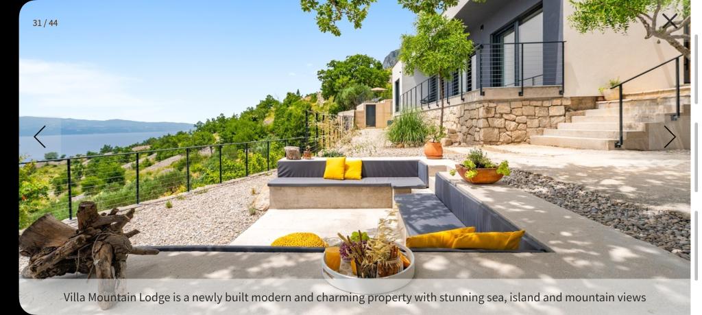 Villa Mountain Lodge is a newly renovated modern 4-bedroom villa with panoramic views of the sea and islands as well as the mountains. On the 900m2 garden you can enjoy Mediterranean plants, a heated swimming pool measuring 7.5x3m which is located within the children's playground. As part of all this, there is a seating area where you can enjoy your first morning coffee under the shade of a tree. A barbecue is near the kitchen as well as a stone table where you can enjoy socializing and peace. The villa is only 8 km from the charming town of Omiš, 40 minutes from Makarska and Split, 2.3 km from the beautiful Artina beach, 950m from a restaurant, 10 minutes from a shop. A car is recommended for this location.