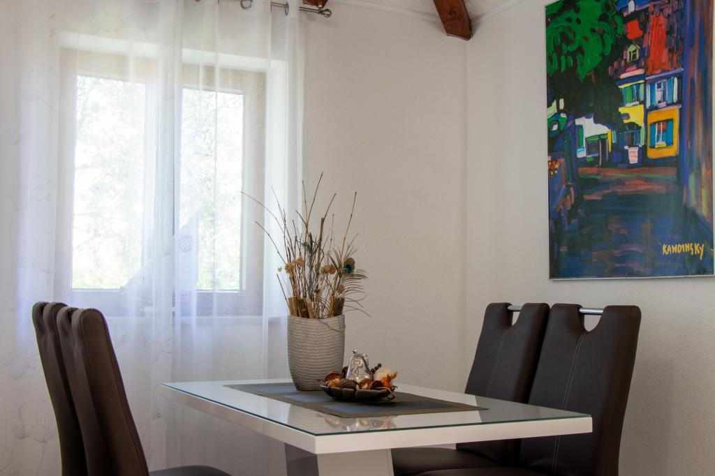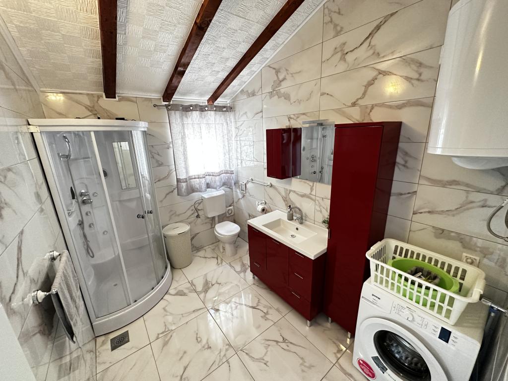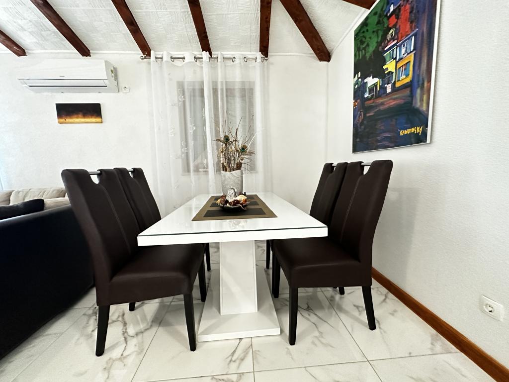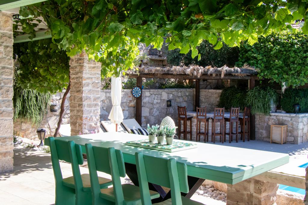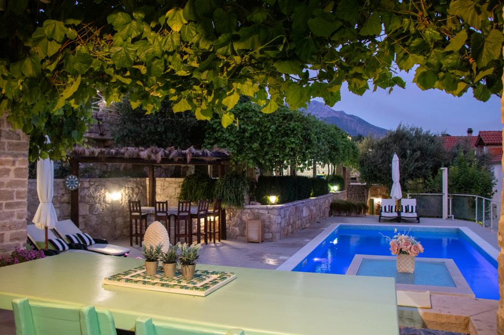 The silence and atmosphere of the Mediterranean as it once was, intimacy and simplicity combined with unpretentious luxury can be found in the ancient village of Stanković, built in the 15th century, above Orebić. Dark wood in combination with white stone, ancient pale green shades of shingle and luxurious interior do not leave guests indifferent. The entire property of 2000m2 is ideal for a quiet family vacation and connecting family and friends. It consists of: 3 houses - Azur, Wood, Ston. Villa Azur - 4 persons. (2 x bedrooms) Common area of the property: outdoor swimming pool, jacuzzi with waterfall, playstation room, gym, children's park and plenty of shade for afternoon siesta. Televisions, air conditioners, dishwashers and other appliances make you feel at home. AZUR HOUSE - 4 PEOPLE!! The village of Stanković is an ideal base for exploring the island or you can relax on a nature walk with a view of the sea that smells of Mediterranean vegetation. You are only 15 minutes away from the city and the beach, while you enjoy our hidden treasure.