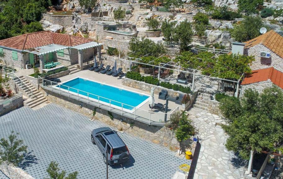 The silence and atmosphere of the Mediterranean as it once was, intimacy and simplicity combined with unpretentious luxury can be found in the ancient village of Stanković, built in the 15th century, above Orebić. Dark wood in combination with white stone, ancient pale green shades of shingle and luxurious interior do not leave guests indifferent. The entire property of 2000m2 is ideal for a quiet family vacation and connecting family and friends. It consists of: 3 houses - Azur, Wood, Ston. Villa Ston / attic - 6 people. (3 x bedrooms) Common area: outdoor pool, jacuzzi with a waterfall, playstation room, gym, children's park and plenty of shade for an afternoon siesta. Televisions, air conditioners, dishwashers and other appliances make you feel at home. The village of Stanković is an ideal base for exploring the island or you can relax on a nature walk with a view of the sea that smells of Mediterranean vegetation. You are only 15 minutes away from the city, the beach, while you enjoy our hidden treasure.