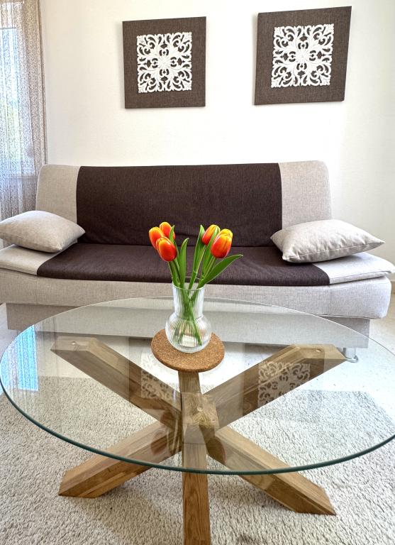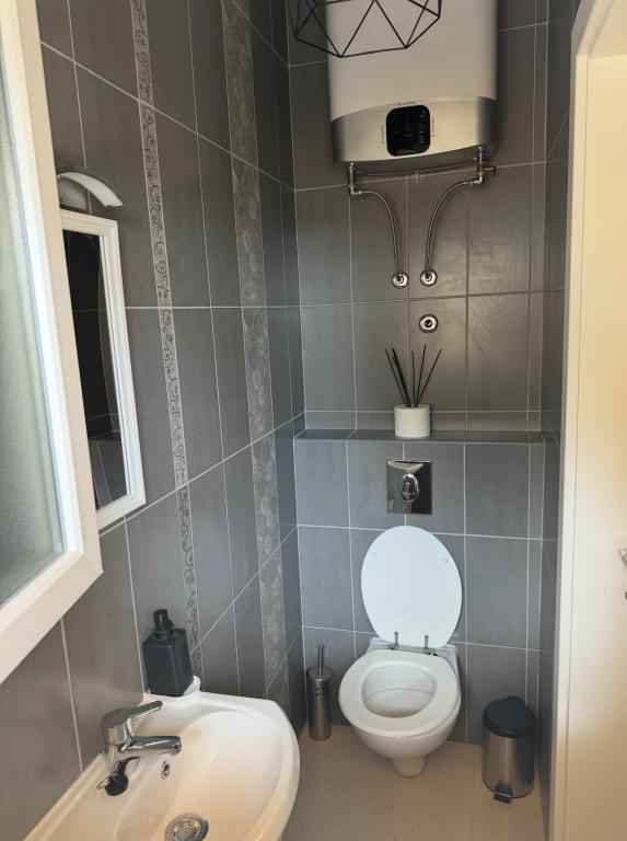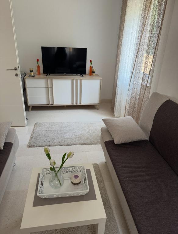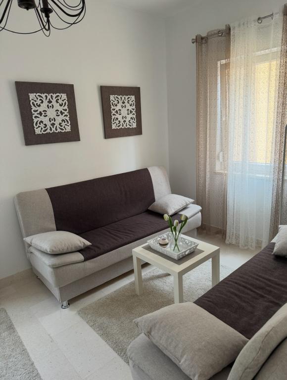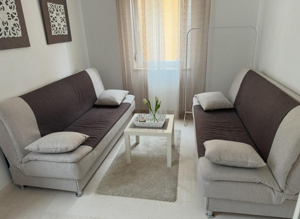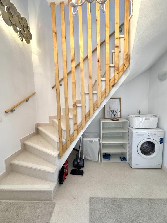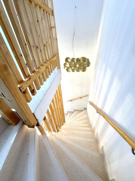 Since the villa has two separate accommodations, please indicate whether you would like to stay only in the villa (without other guests) or book only the apartment. The prices shown are for one apartment. The apartment has a living room, kitchen with dining area and toilet on the ground floor, and two bedrooms with a bathroom on the first floor.