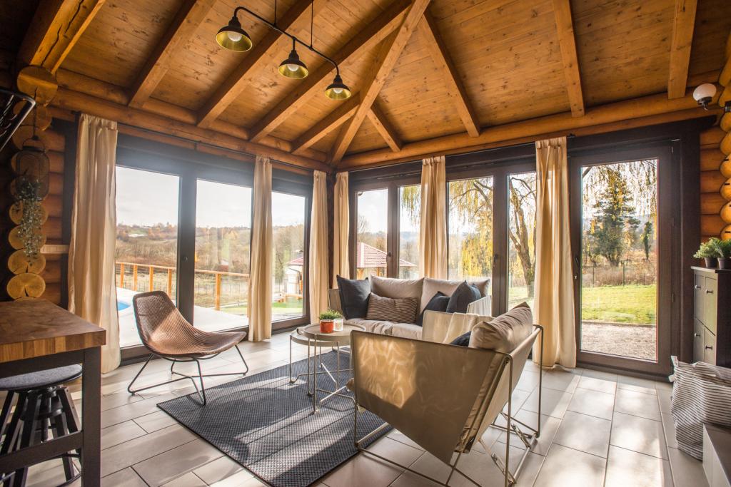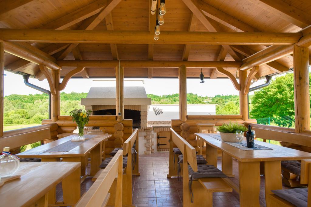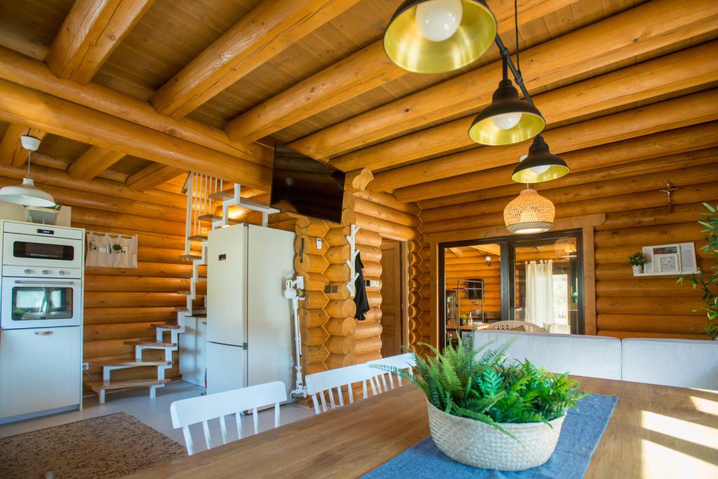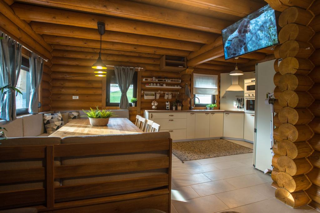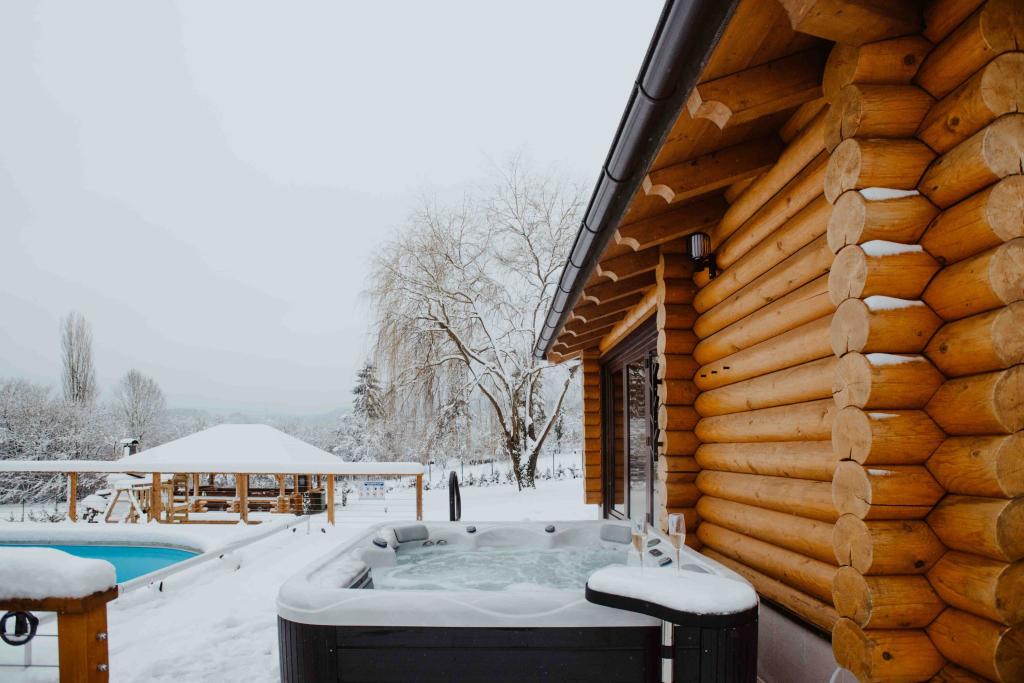 Wooden house made of Siberian pine. House: maximum no. beds 10, house 108 m2, terrace with pool 105 m2, sauna, jacuzzi, gazebo 30 m2. garden over 7,000 m2, parking, living room with kitchen, 3 bedrooms, bathroom with shower and toilet. Closed terrace with fireplace, tennis court for socializing and sports, changing room with shower and toilet, gazebo with barbecue, fishing rod and necessary equipment. Children's playground, 4 TVs, darts.