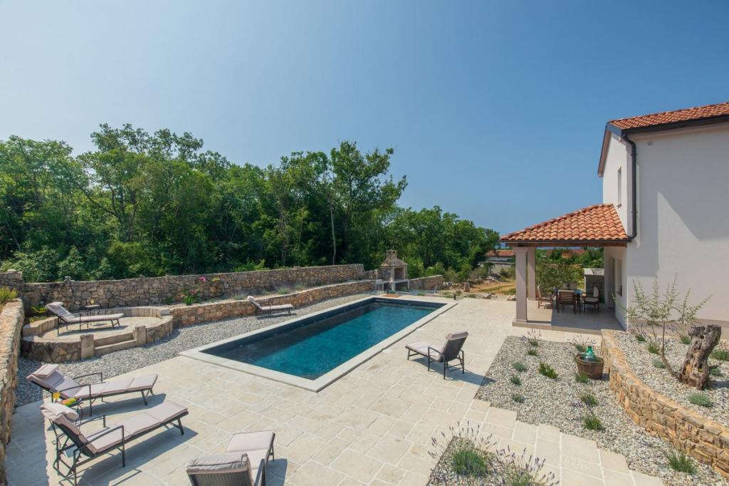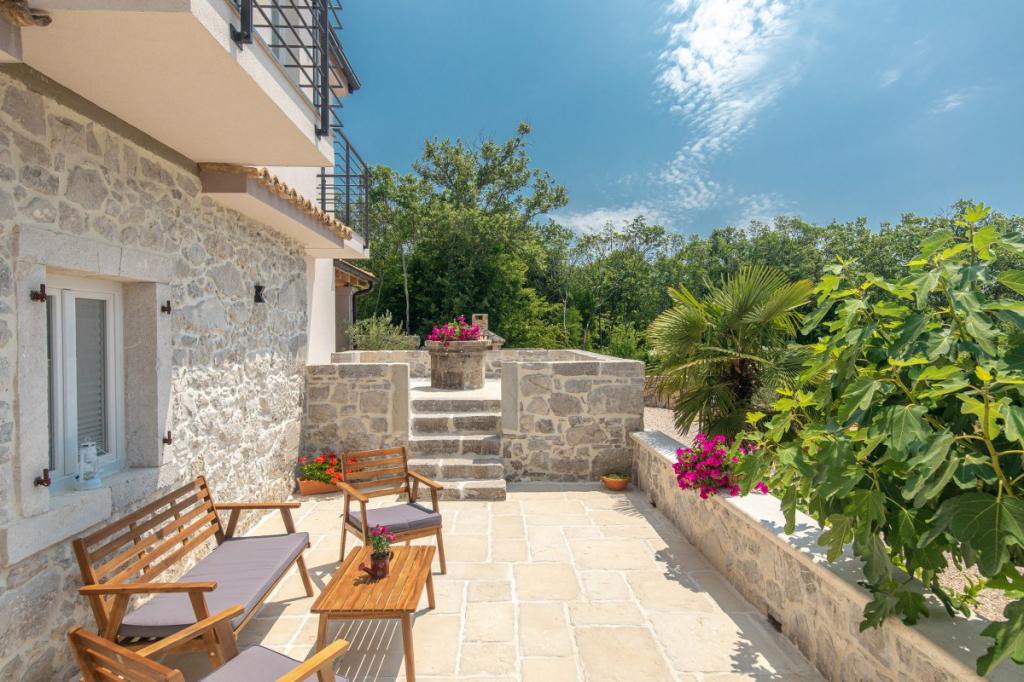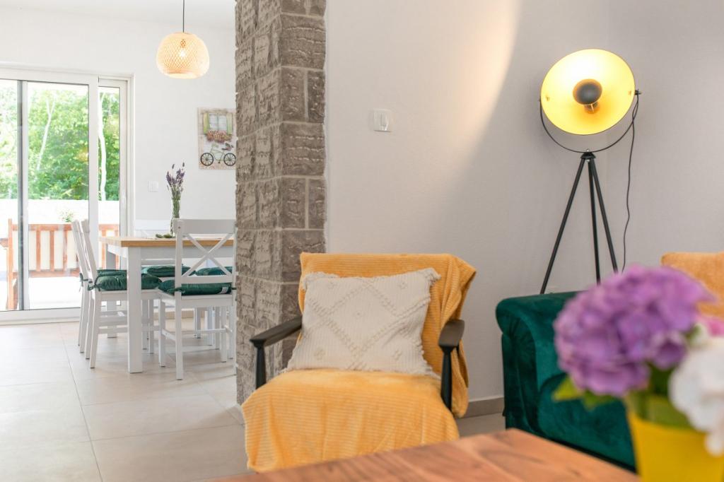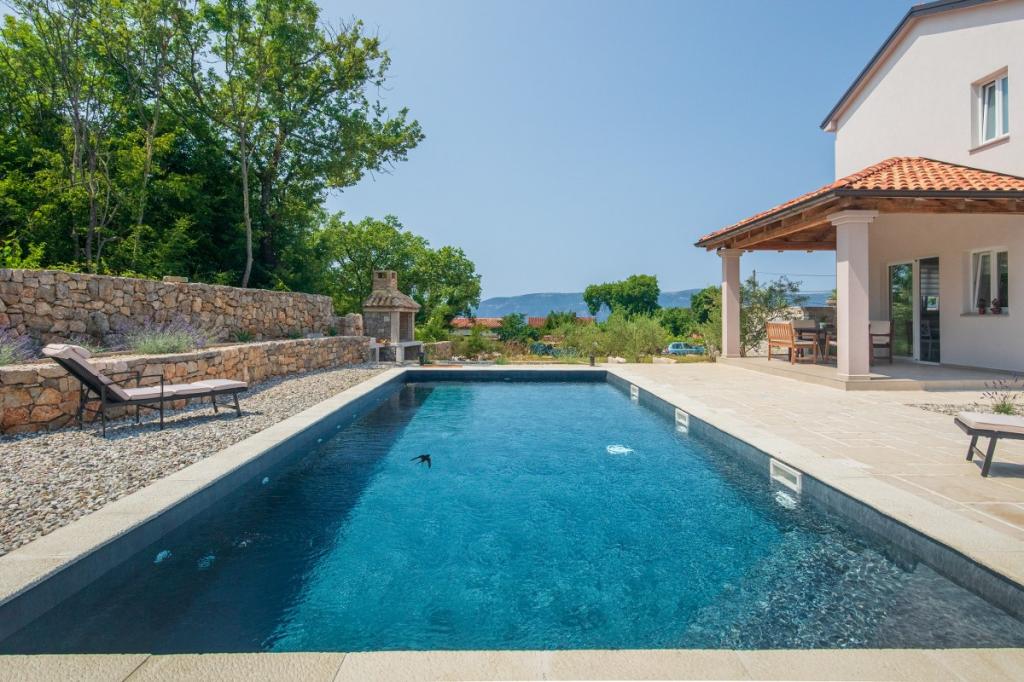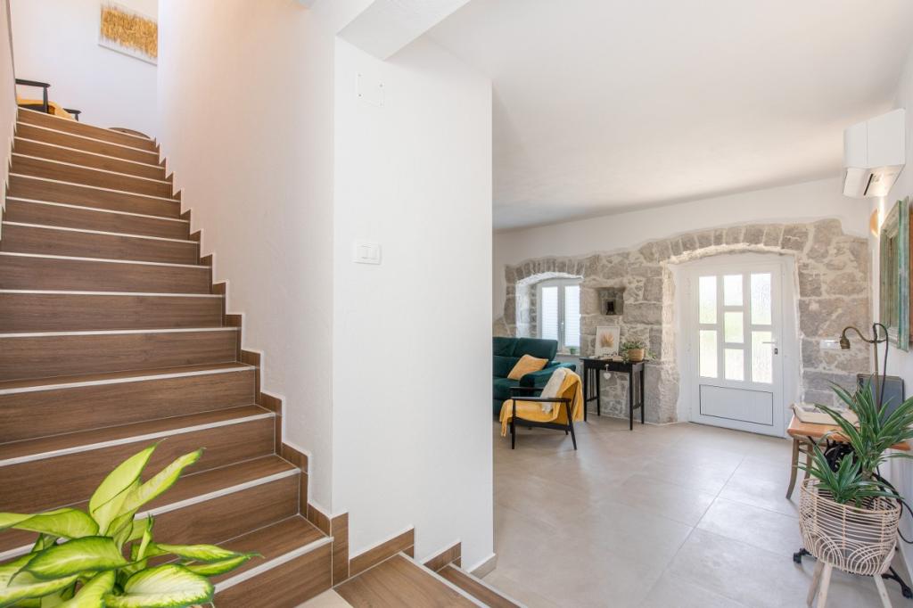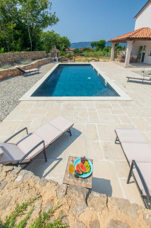 Villa Albina is located in a quiet rural area in Skrpčići on the island of Krk, very close to the town of Krk. Unique, renovated in a way to keep its authenticity, with many rustic details. The house offers a very romantic, warm and pleasant atmosphere. This accommodation is ideal if you want to spend your vacation in a natural and relaxing environment. Enjoy the beautiful 10x4 swimming pool and the spacious interior of the accommodation, on the first floor two spacious bedrooms with their own bathroom and balcony, a large living room and a complete kitchen with all appliances. All rooms in the house are air-conditioned and have free internet, two terraces and a spacious garden with Mediterranean herbs and olives hidden from view.
