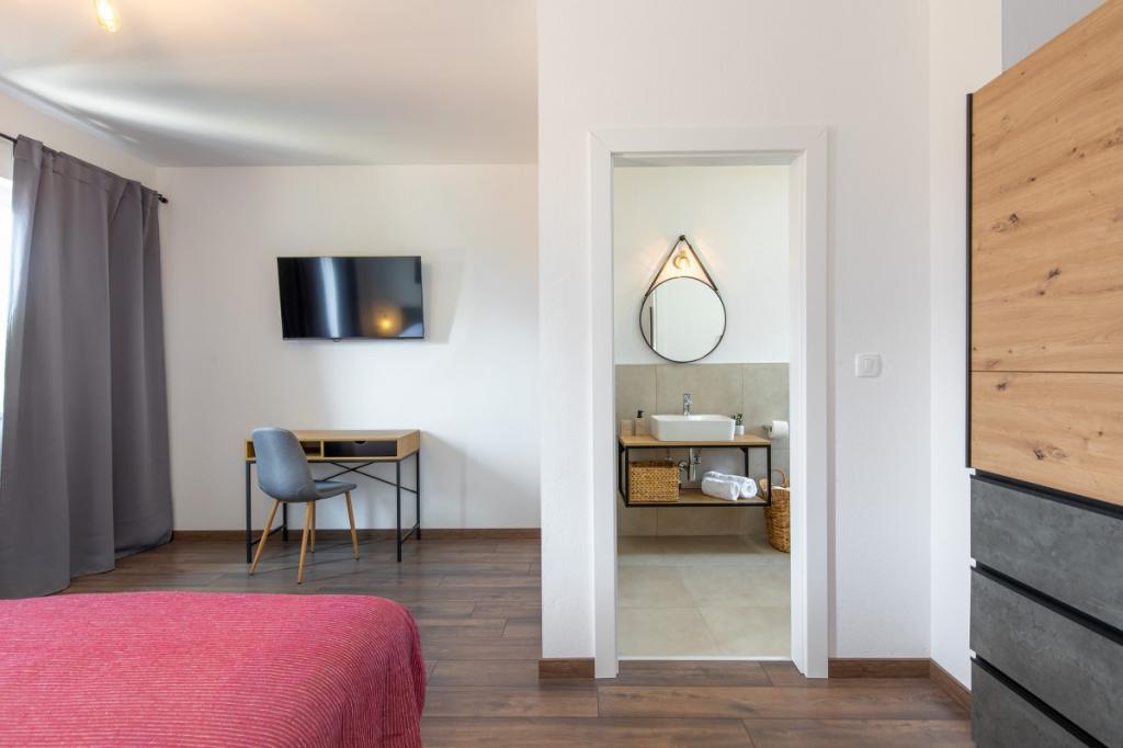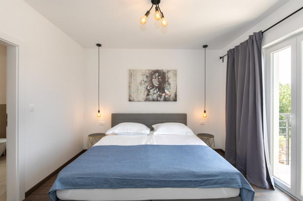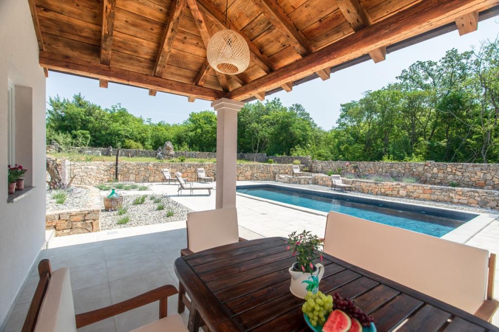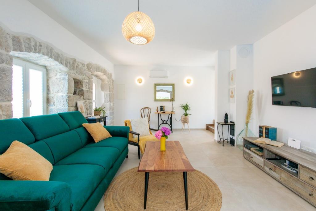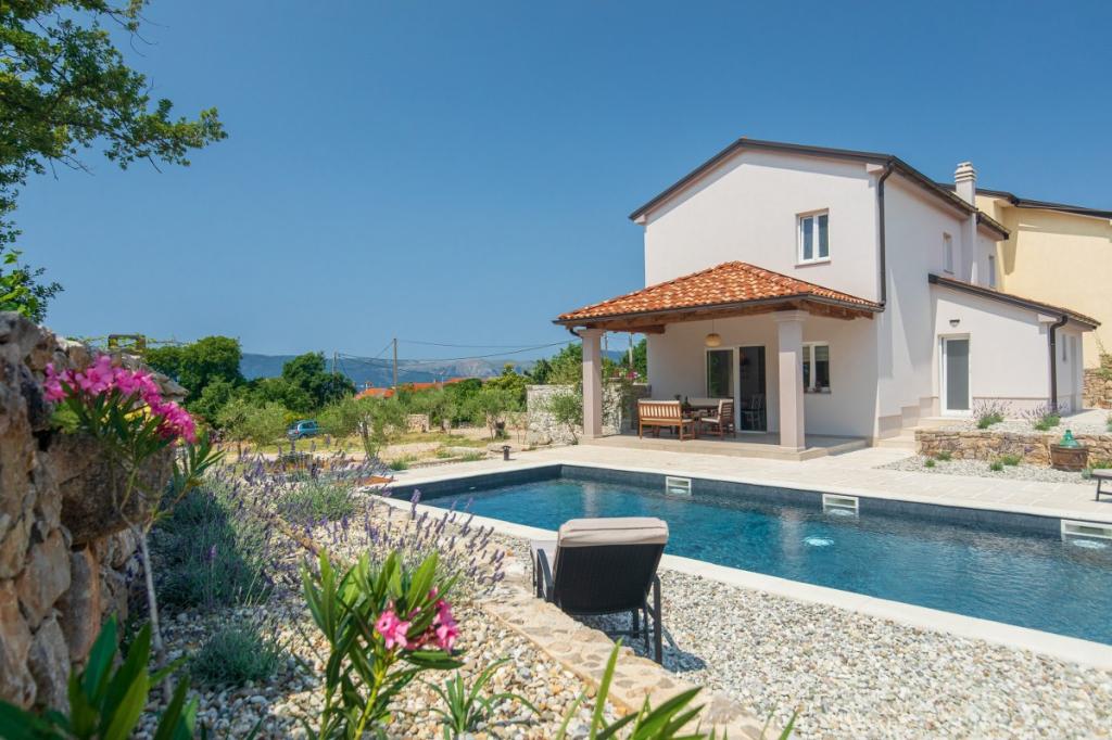 Villa Albina is located in a quiet rural area in Skrpčići on the island of Krk, very close to the town of Krk. Unique, renovated in a way to keep its authenticity, with many rustic details. The house offers a very romantic, warm and pleasant atmosphere. This accommodation is ideal if you want to spend your vacation in a natural and relaxing environment. Enjoy the beautiful 10x4 swimming pool and the spacious interior of the accommodation, on the first floor two spacious bedrooms with their own bathroom and balcony, a large living room and a complete kitchen with all appliances. All rooms in the house are air-conditioned and have free internet, two terraces and a spacious garden with Mediterranean herbs and olives hidden from view.