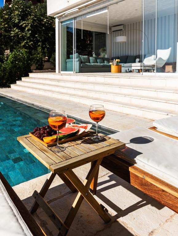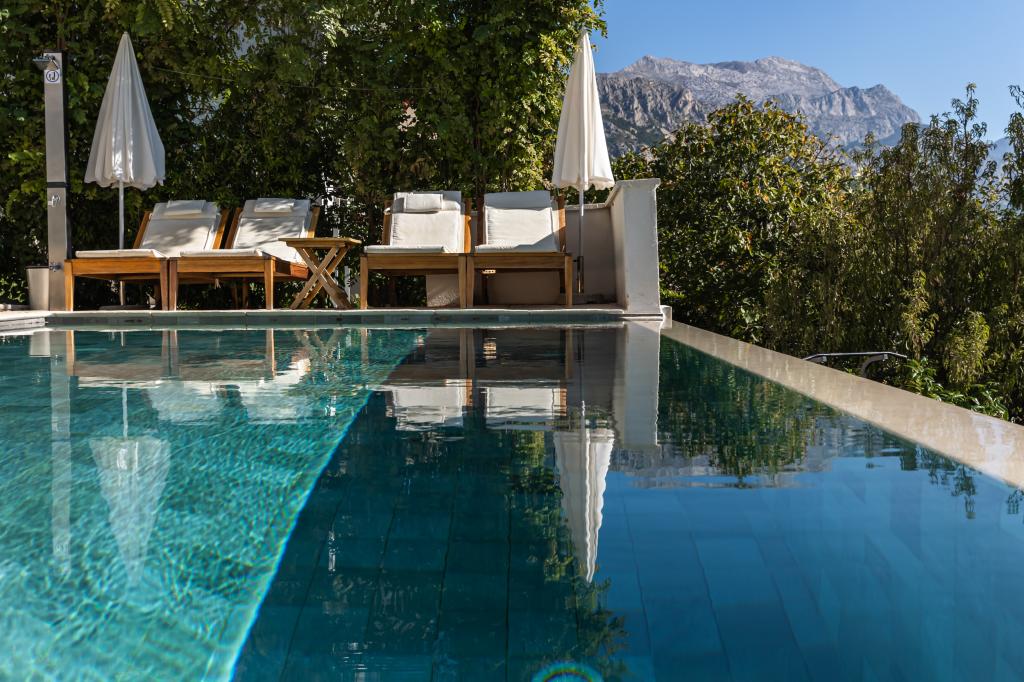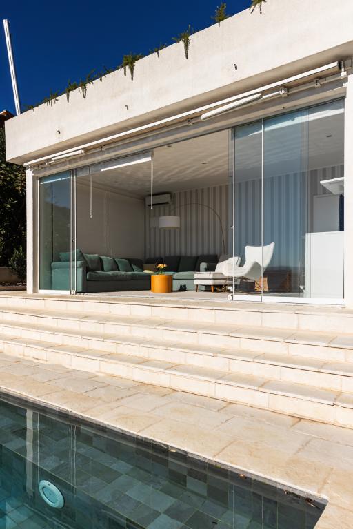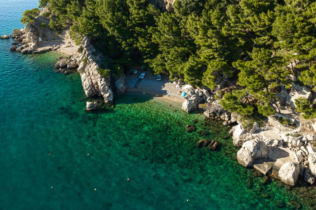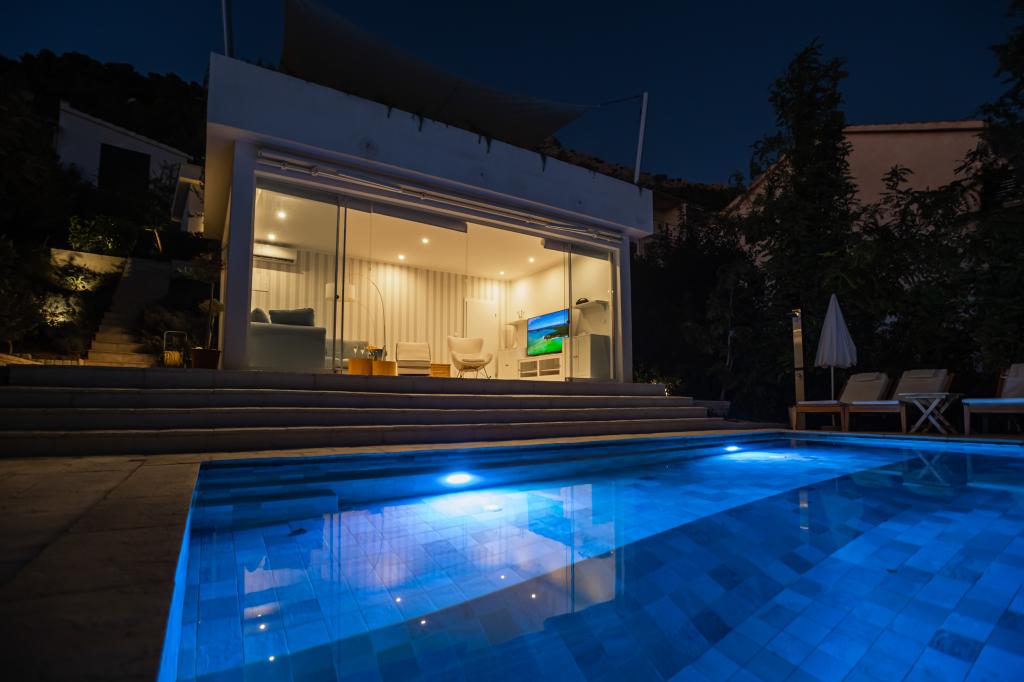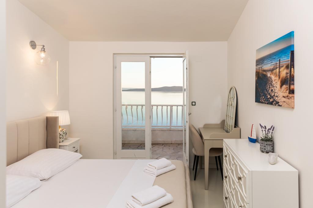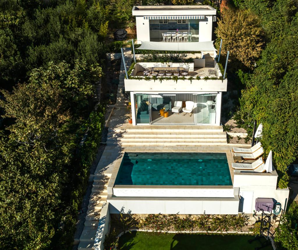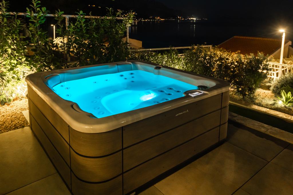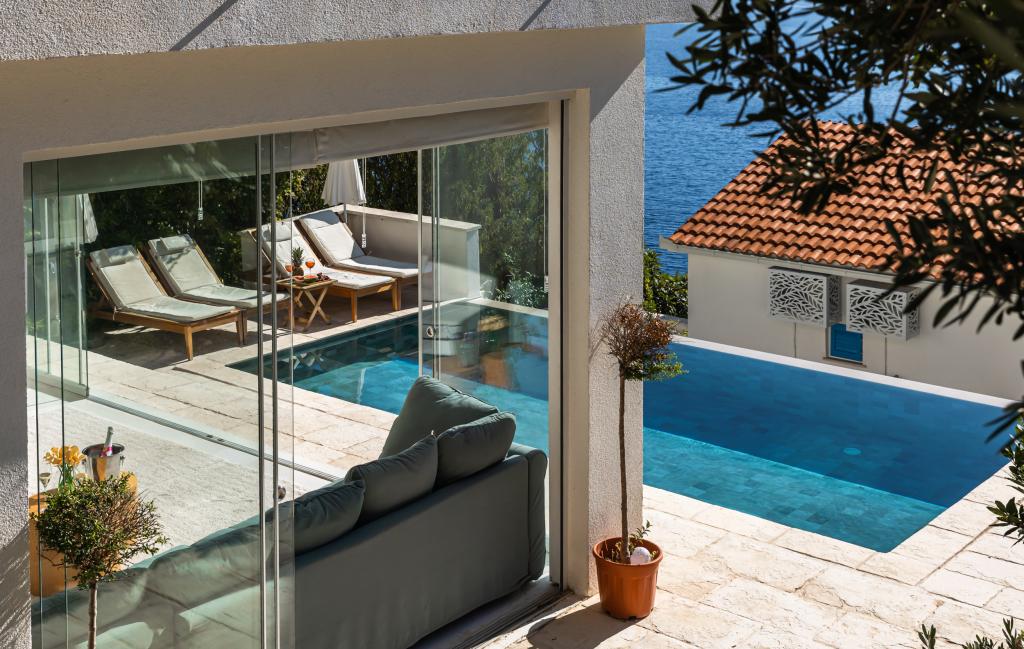 The idyllic Villa Leview, located in a quiet part of Pisak, will delight you with its spacious green courtyard and garden oases and a beautiful open view of the sea. As its name suggests, Villa Leview has an open view of the sea from every part of the house, whether you are in the kitchen, living room or bedroom. The heated pool and hot tub will make your stay enjoyable even outside the summer season. The house has five bedrooms and provides comfortable accommodation for 10 people. The rooms are equipped with spring box beds, of which three rooms have double box beds 180cm wide and two rooms have two separate beds 90cm wide. A fold-out children's bed is also available. Next to the pool is a spacious living room where you can also enjoy the sea view. The kitchen and dining room for 10 people are connected to a beautiful dining terrace with an unforgettable view of the sea and islands as well as Mount Biokovo in the background. The house has two garages for 4 cars.