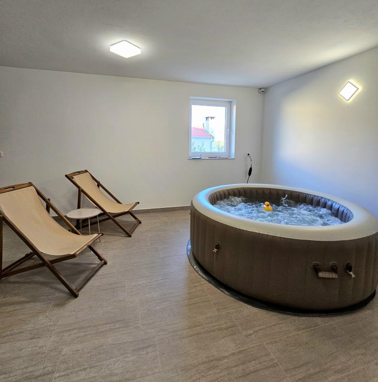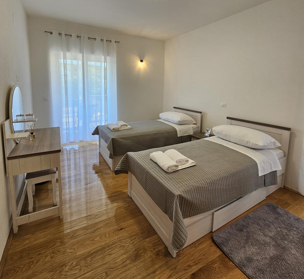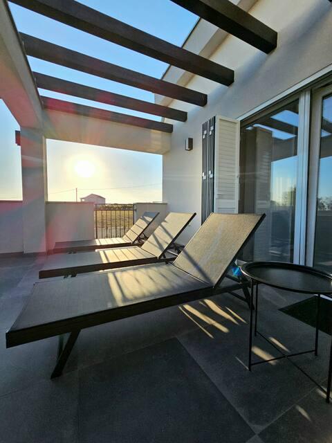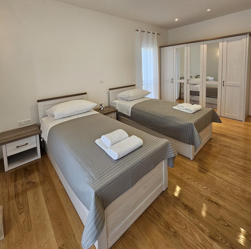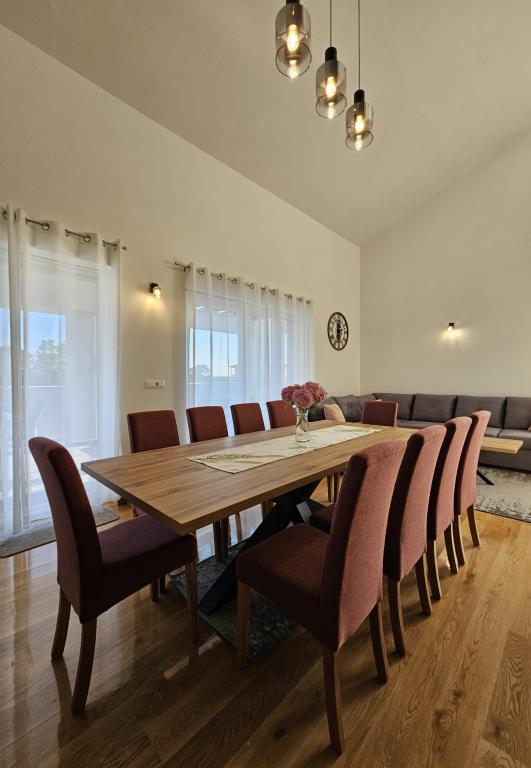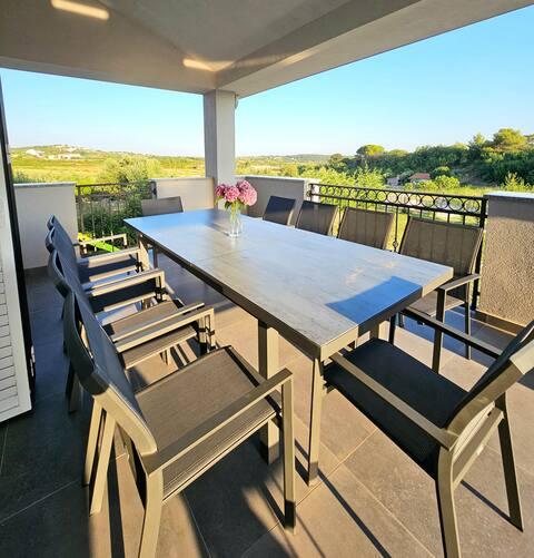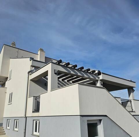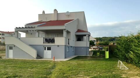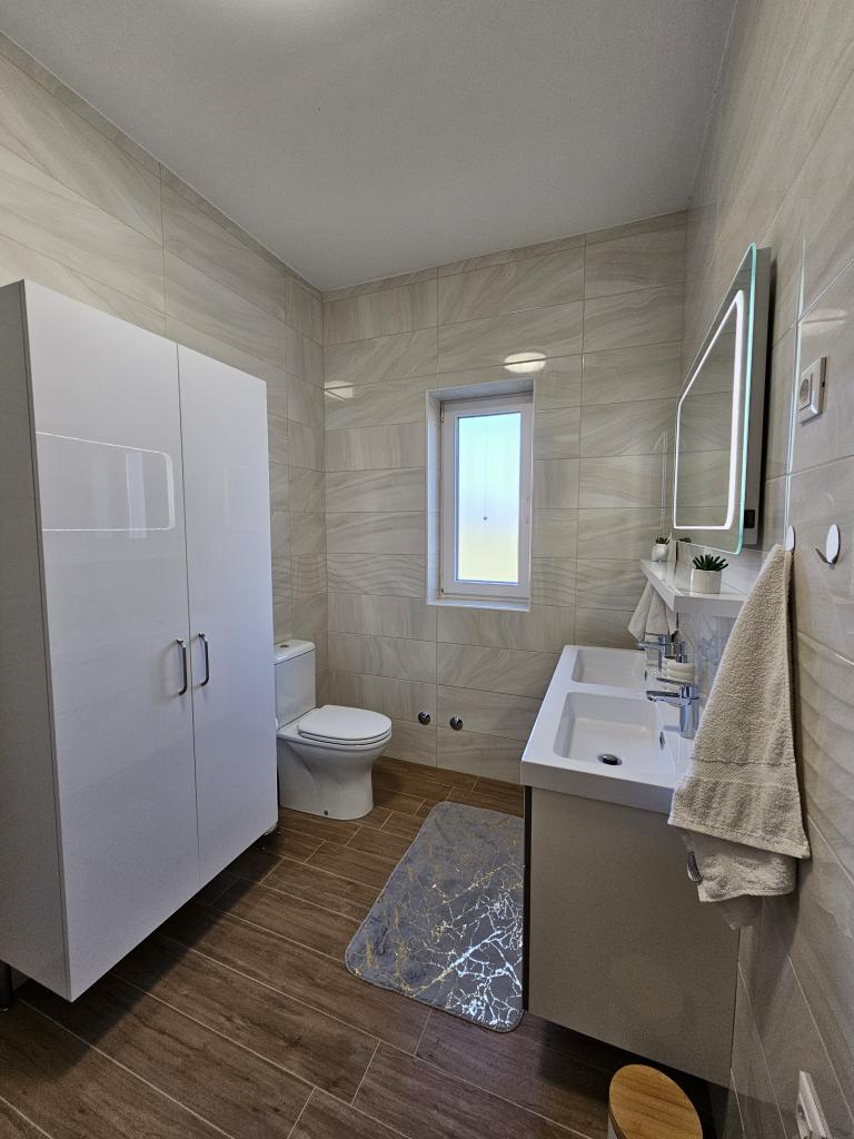 Welcome to your 324 m² family vacation home near Zadar — a spacious home designed for relaxation and fun. Parents can relax in the private hot tub or stay active in the fully equipped gym, while the kids enjoy their own safe outdoor playground. The house comfortably accommodates up to 10 guests and offers five carefully furnished bedrooms, three modern bathrooms, two fully equipped kitchens, a dining area and a bright living room with a TV. A dedicated workspace and laundry provide additional convenience for longer stays. Step outside into the fully fenced private yard that ensures privacy and security, ideal for families with children. Outdoor living is the highlight of this home, with two balconies with sun loungers and a large terrace with a barbecue, a spacious outdoor dining area and a relaxing sunbathing area — perfect for enjoying warm Dalmatian evenings. Free private parking is available on site.