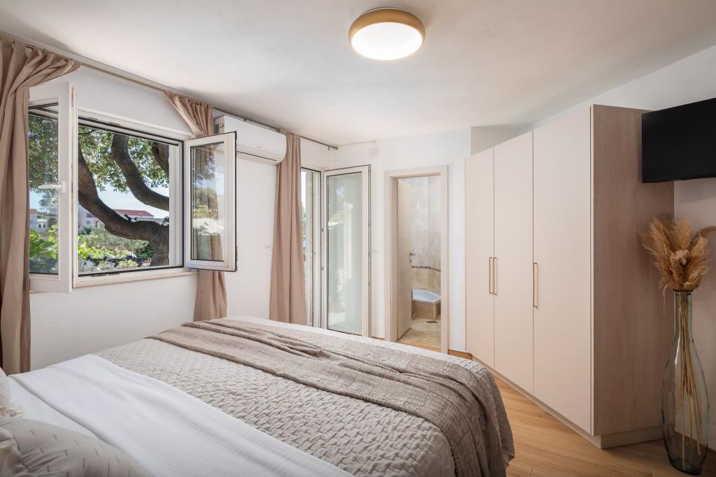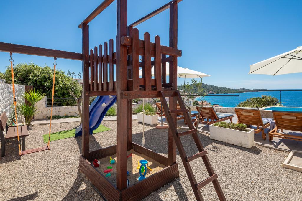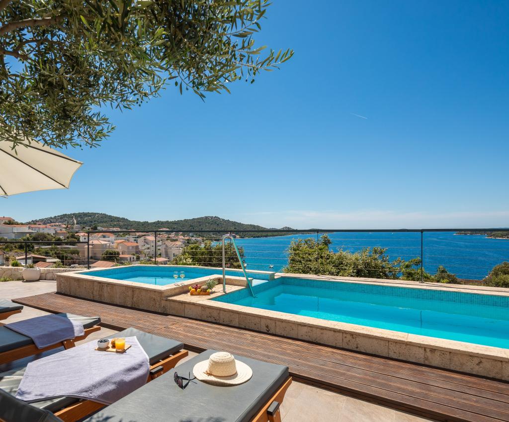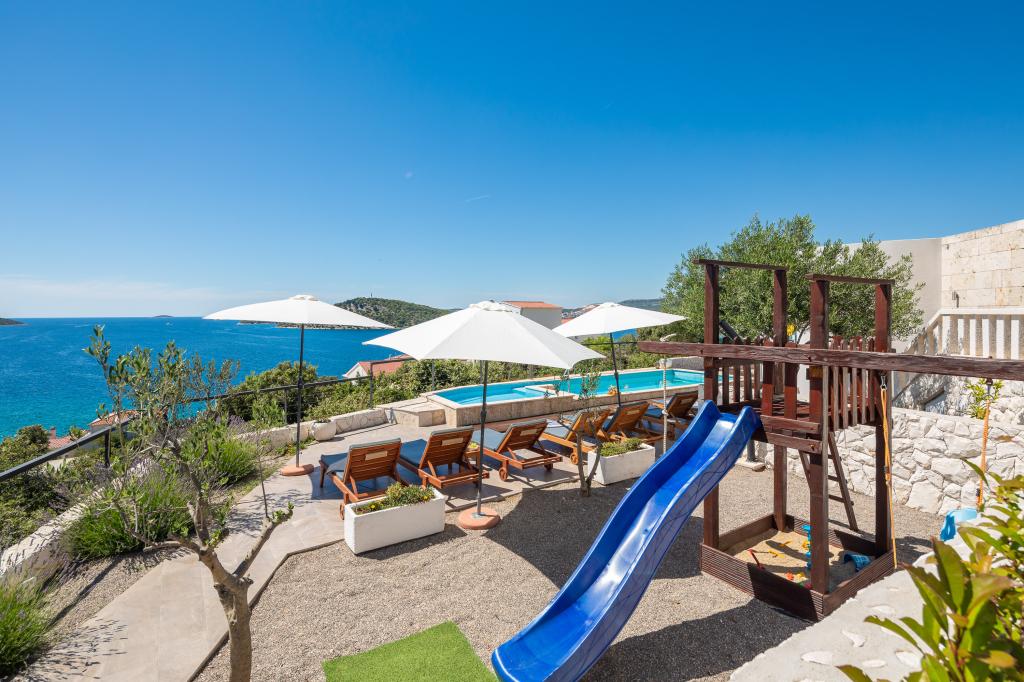 We have been to Marija's a few times and every time we look forward to the peace and quiet. The highlight is the view. In the morning with coffee, during the day while sunbathing or in the evening with the most beautiful sunsets. We can't get enough of it. The two pools, the playground and the outdoor grill are other special features that we really appreciate. The facilities are top-notch and a lot of effort has been put into making your stay as comfortable and relaxing as possible. The rooms are large and furnished to a high standard. Marija and her family are very friendly, warm-hearted and helpful. We always enjoy coming back and can highly recommend a stay here for families with children of all ages. The beach and the small town are within walking distance. Everything you need is nearby. Trips to Trogir, Split, Promosten or Sibenik are highly recommended. You can also rent boats or book boat trips at the small harbor in Razanj.
