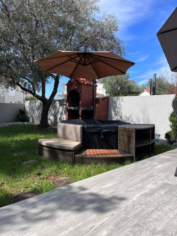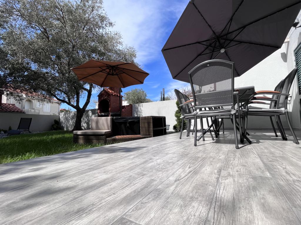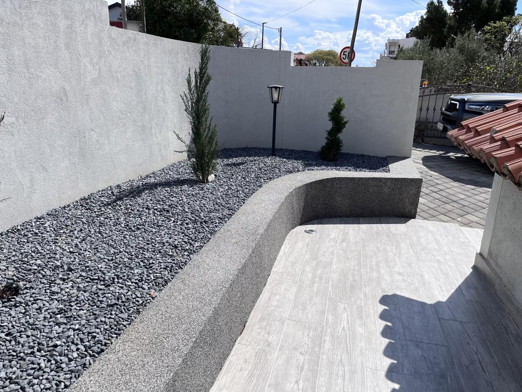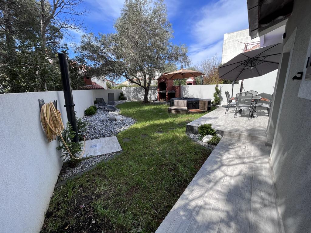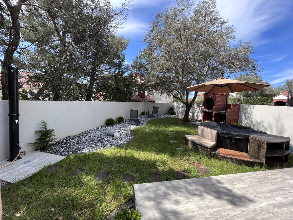 Our lovely villa is located in the center of Starigrad Paklenica, on the main road DC8, yet it offers the peace and privacy you need for a superb vacation. The location gives you quick access to the sea, Paklenica National Park, if you like to explore different locations, close to the A1 highway and Zadar airport. Opposite the house there is a shop that is open every day, restaurants are a few minutes' walk away, and everything else you might need is within 2 kilometers (ATMs, post office, pharmacy, gas station, pharmacy...) The interior of the villa is modernly designed, where a welcome gift awaits you, as well as all the necessities and devices needed for a holiday home. You can relax in the living room with various television programs, surf the Internet unlimitedly or simply use one of the terraces for sunbathing while drinking coffee. If you want to prepare your own meals, you have a fully equipped kitchen with appliances and dishes. If you forgot something from cosmetics or necessities, don't worry, we have everything you need. On the outdoor terrace, which is in the yard, you will be greeted by a hydromassage tub, which you can temper according to your own wishes. If you are a fan of barbecue, a fireplace will be waiting for you in the yard where you can prepare your own sp