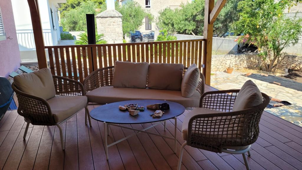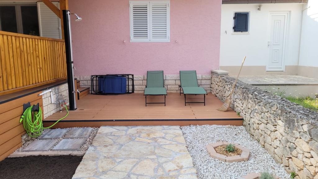 Holiday Home Roza is a newly renovated and spacious oasis. Our large house offers four comfortable bedrooms, two bathrooms and an additional toilet, which provides enough space for everyone. Enjoy the comfort of a fully equipped kitchen, where you will find everything you need to prepare your favorite meals, your morning coffee or even a refreshing ice cream dessert. Life at Holiday Home Roza naturally continues to our beautiful outdoor spaces. Relax on the spacious covered terrace, perfect for al fresco dining or simply enjoying the island breeze, rain or shine. Roll up your sleeves and prepare delicious meals on the grill, relax in our decorated outdoor corner, dine at the large outdoor table and cool off under the refreshing outdoor shower with hot water after a day at the beach. It is located in the immediate vicinity of the sandy beach, where you can also find the Beach Bar. There is also a bakery nearby where you can buy fresh baked goods.