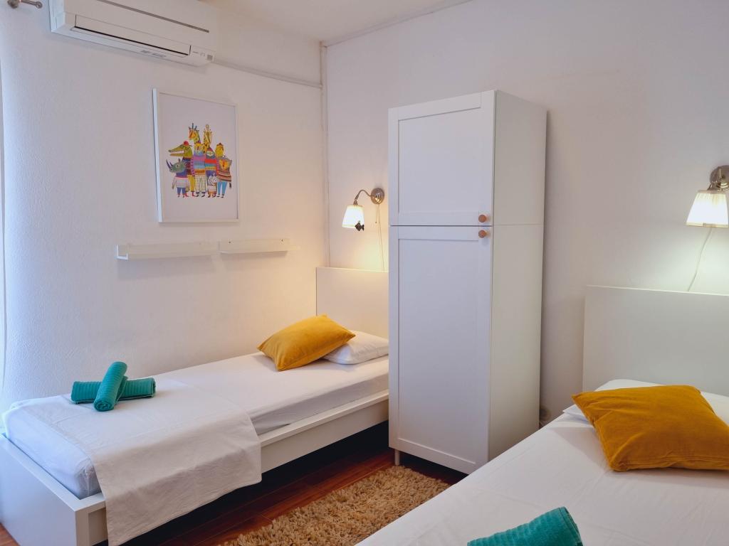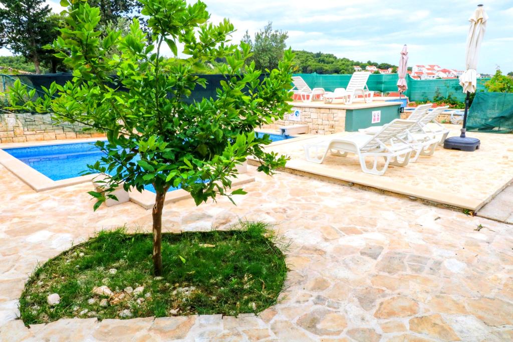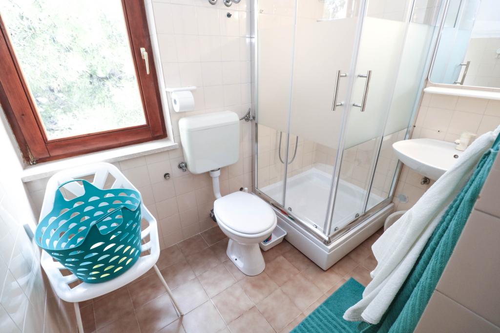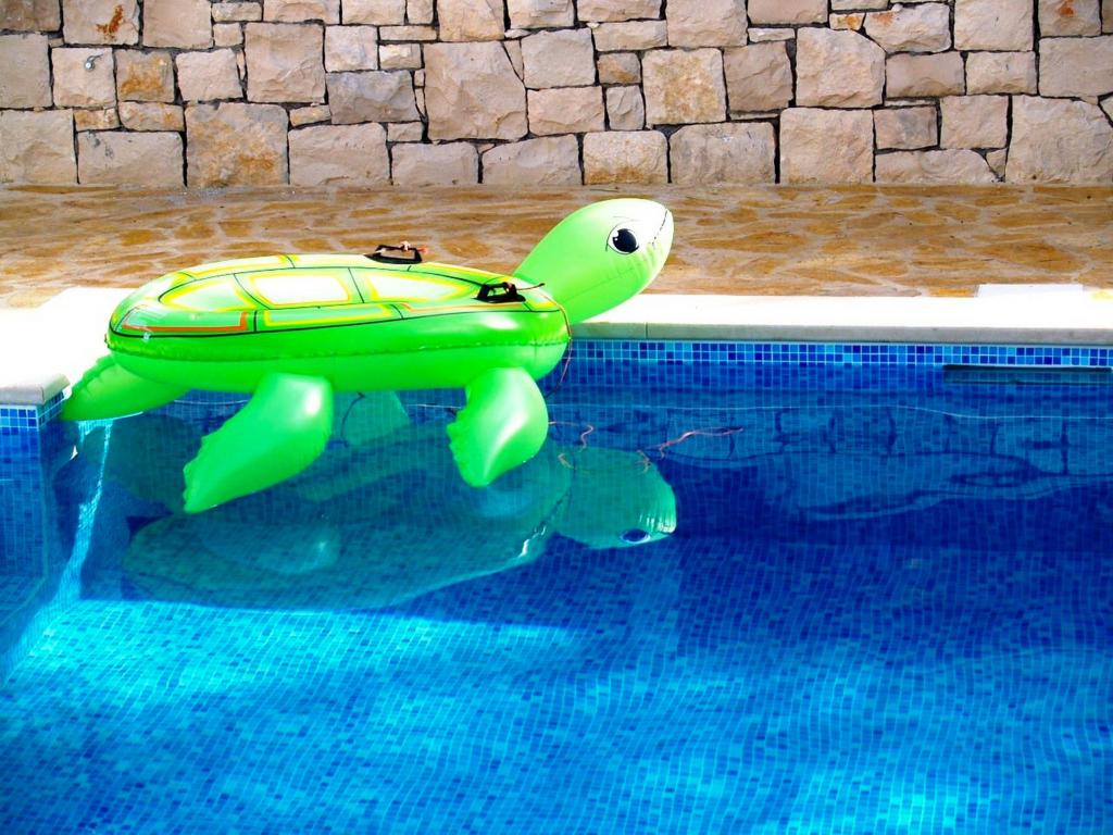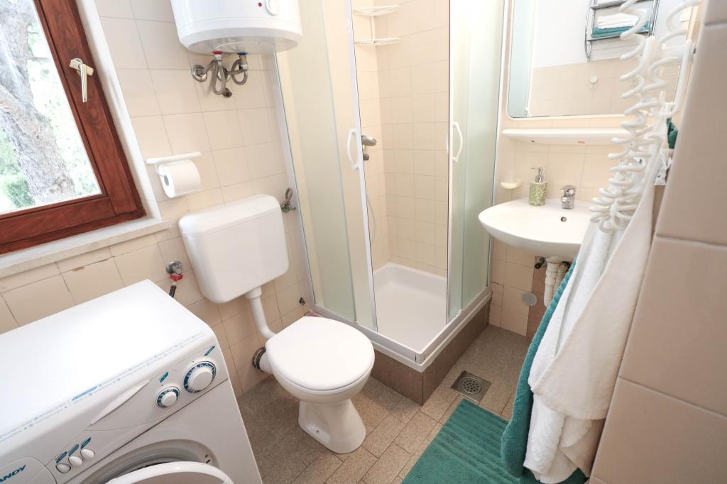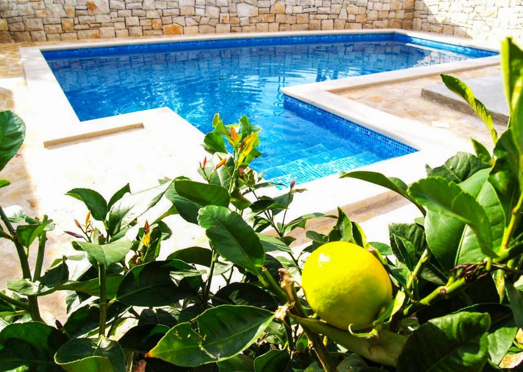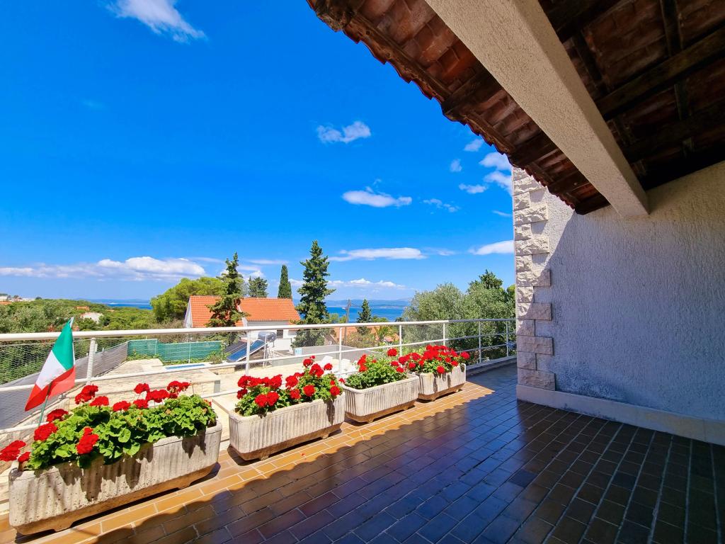 Villa Dvornik provides complete privacy in comfortable accommodation for families with children, student groups and family gatherings of several generations. It has a view of the sea and is only 300 meters away from the sea and the beach. Living area of 110 m2 + 25 m2 terrace, large garden area of 280 m2 covered with stone slabs, with 4 rooms (8 beds) and two swimming pools. A large pool with 4 massage jets of 24 m2 and a depth of 1.5 m for adults and a smaller pool intended for small children of size 3.5 m2 and a depth of 0.5 m. Both pools are heated by means of 10 m2 solar collectors that allow the temperature of the pool of 21 °C in May and October. The outdoor shower and grill are located in the area surrounding the house. The house is air-conditioned and has access to wireless internet. Three parking spaces are provided within the property surrounding the house. Pets are welcome.