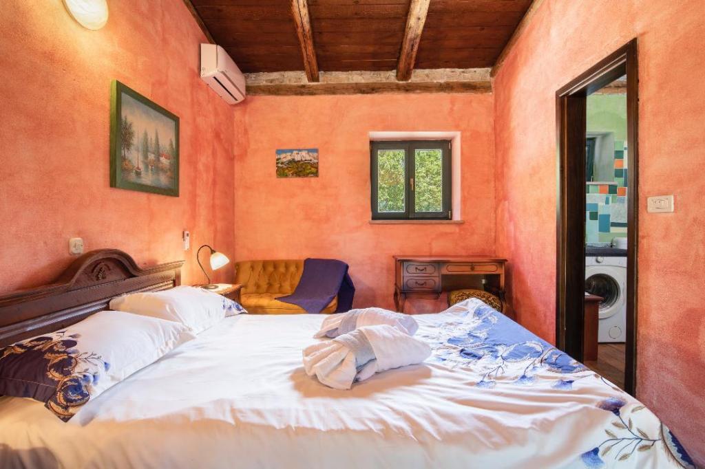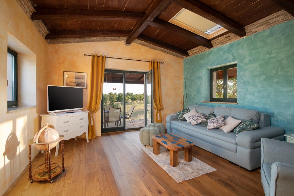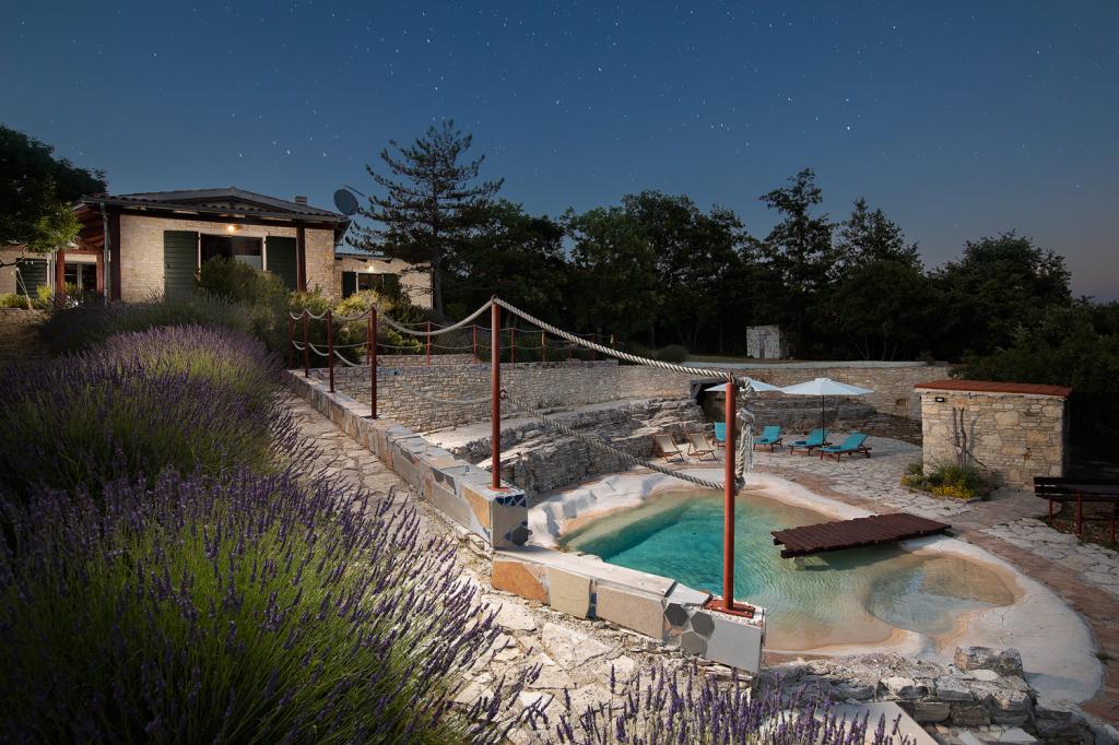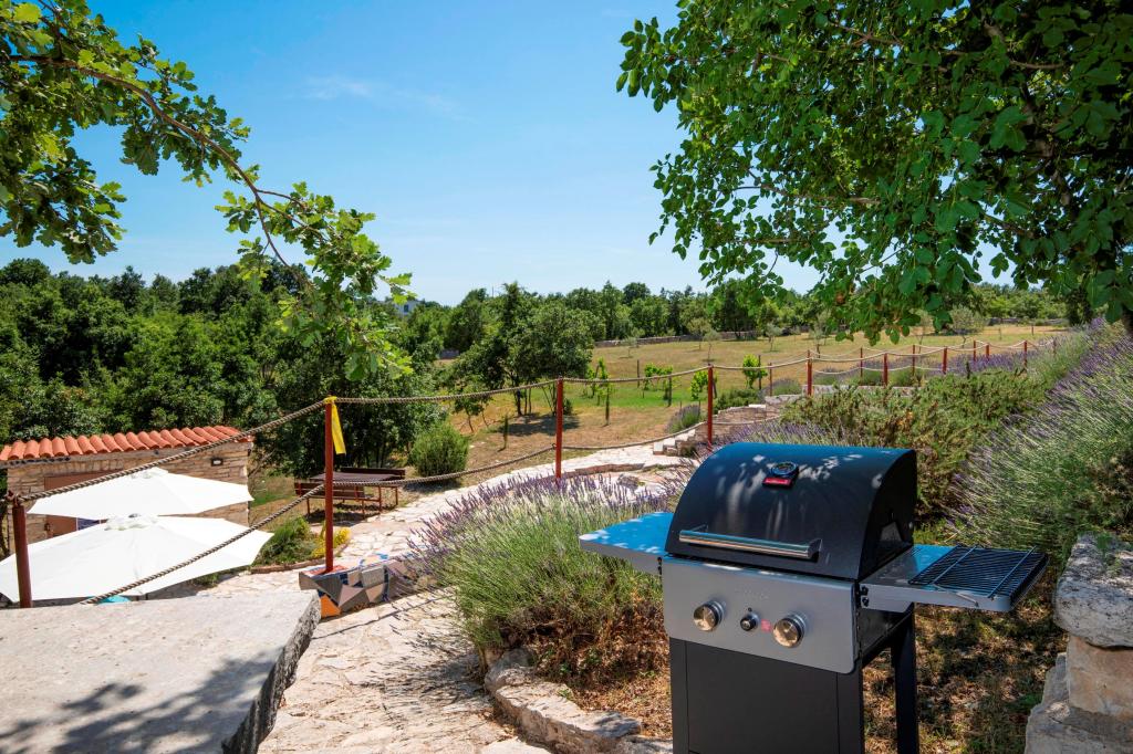 Villa Eternelle is located in Juršići, between the medieval towns of Svetvinčenat and Vodnjan, and offers a private pool and a 10,000 m2 garden. The distance from Pula and the Brijuni National Park is 20 km, and guests can enjoy the pristine and untouched nature. It offers private parking on the garden and free Wi-Fi. The villa has two bedrooms, a kitchen with a refrigerator, coffee maker, dishwasher and washing machine, and an oven. Each room has its own bathroom. Wake up in the morning and enjoy breakfast on the terrace immersed in nature, from the gentle murmur of the waterfall in the pool to the view of butterflies above the lavender bushes. Close your eyes and feel the scents of Mediterranean lavender, immortelle, rosemary, and sage. During hot summer days, cool off in the pool or seek shade in the cave by the pool. Rovinj is 31 km from the villa, while Poreč is 44 km away and Pula Airport is 15 km away.