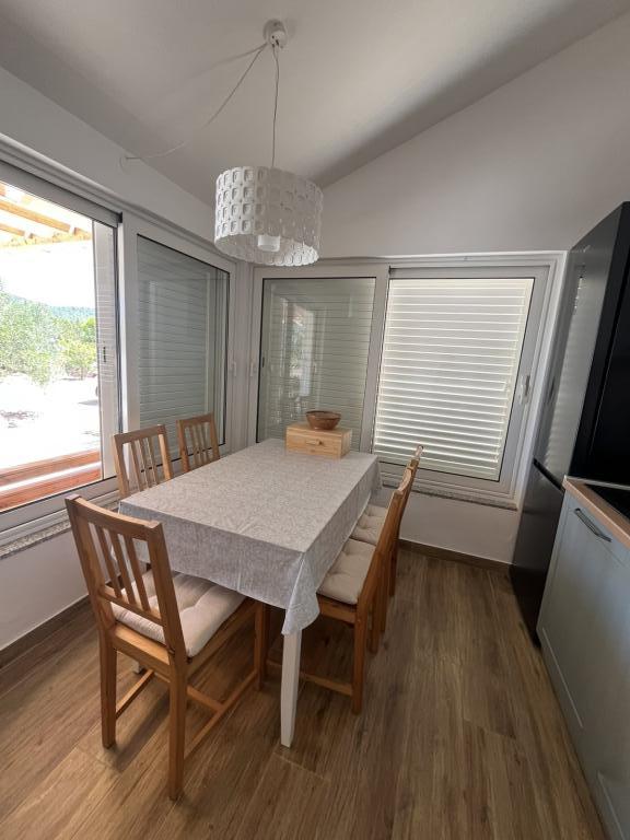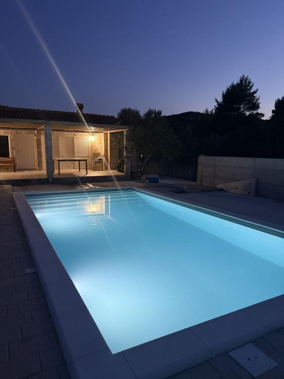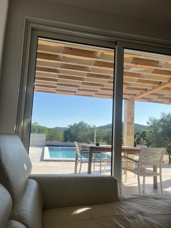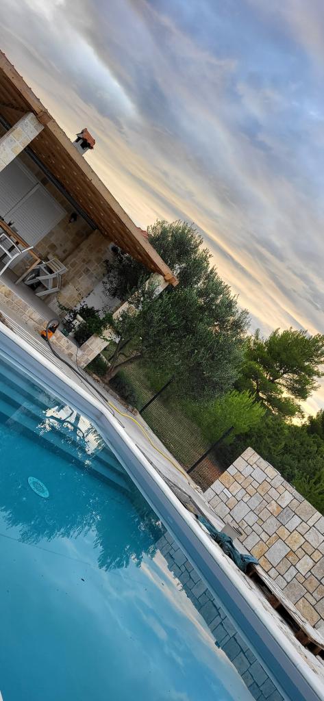 Fully equipped villa with heated 4x8 swimming pool, solar shower, deck chairs, chairs, large terrace and built-in barbecue. The single-storey house is located in the hinterland between Tisno and Tribunj, in the village of Ivinj. It has a large garden of 3500m2, with 80 olive trees, fig trees, lots of lavender and other Mediterranean flowers,... The distance from the city center is 3 km, it is located along the regional road Vodice - Tisno, Murter. It is close to the Kornati National Park and the Krka Waterfalls.