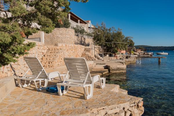 A nice country atmosphere in a quiet bay beside a small place called Vinišća. Villa Stella is the ideal place for your vacation. The villa is rented in whole with a garden. Villa is 80m2. The land plot has about 250m2, of which two covered areas of approx. 35m2. In the basement of the garden, tables and chairs / benches are under the sunbeds, beside the fireplace, and an additional outside shower with toilet. Within the villa, in the basement, there is also the kitchen itself, deliberately separated from the first floor (due to the smell of cooking) where the rooms are. On the first floor there are 3 rooms: 1 x double room, 1 x single room, 1 x double room with another sofa). The total capacity is 5 1. From one room there is a terrace of about 25m2, which is not overlooked, so this space is pleasant for the evening. The villa is about 50m away from the sea. At the sea you have your own private stone mulet, with a small pebble beach. Villa has private parking.