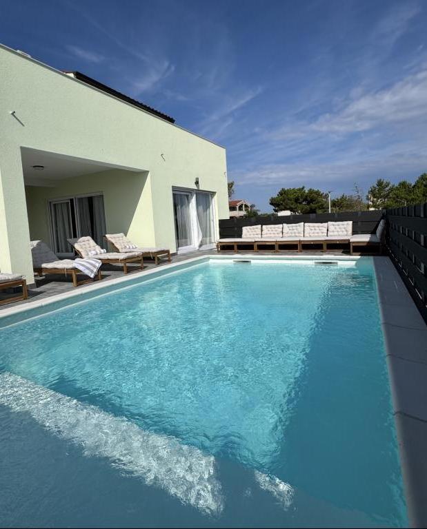 Holiday house with swimming pool, sea and Velebit view - perfect vacation in peace and quiet! Enjoy complete peace and privacy in this beautiful holiday house located outside the center, ideal for a family vacation or relaxing with friends! Location The house is located in a quiet village, away from the city noise, and at the same time only: • 500 m from the main beach • 500 m from the famous sandy Rajska beach • 3 km from the town center About the house The house offers everything you need for a comfortable and relaxing stay: • 4 spacious bedrooms for 8 people • 2 modern bathrooms • 1 additional toilet • Fully equipped kitchen and living room • Air conditioning, Wi-Fi, SAT TV Exterior and additional amenities • Private pool with sun loungers • Beautiful view of the sea and Velebit mountain • Spacious terrace and barbecue • Private parking lot • Ideal for families with children and nature lovers The peaceful environment makes this house the perfect choice for those who want to escape from everyday stress and enjoy the natural beauties, sea and mountains. Book your appointment today and ensure the perfect vacation!