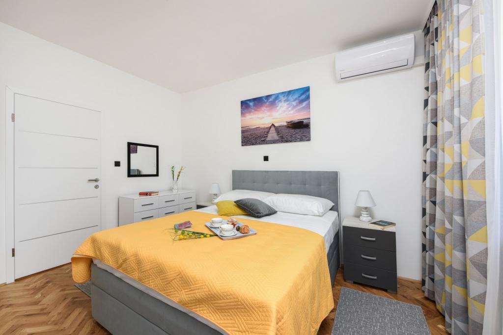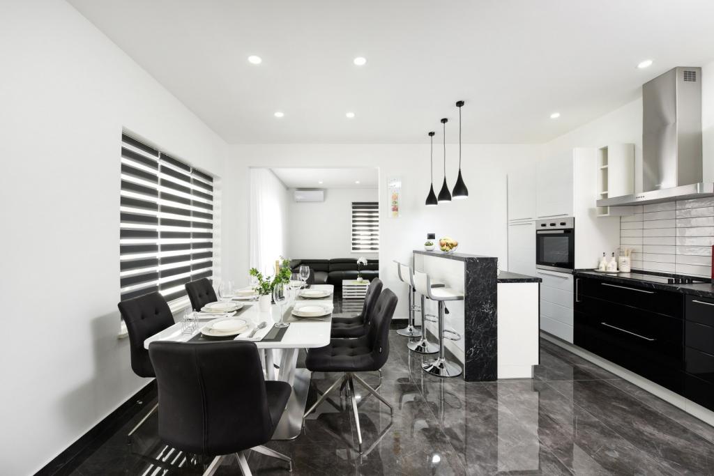 Private villa Mare with heated pool. Located between the city of Zadar (2km) and the airport (5km). Villa Mare is a newly renovated and fully furnished holiday home. The villa has a private heated pool, three bedrooms (two of which can be converted into a pull-out bed), a living room with a flat screen TV (139cm), a fully equipped kitchen with a dining area, two bathrooms, a party room (billiards, darts, PlayStation), a fitness area with a flat screen TV (139cm). All rooms are air-conditioned. The villa also offers a summer kitchen with an indoor barbecue. The villa is also rented from 1.10 to 1.4 at a price of 3000 euros per month, while the minimum rental period is one month.