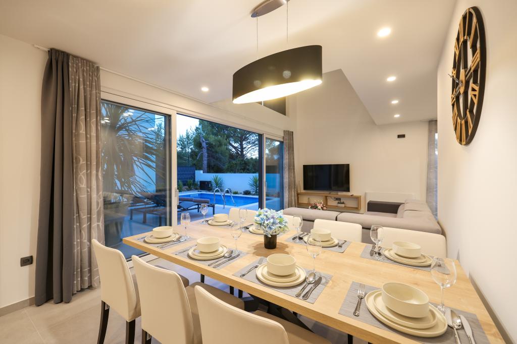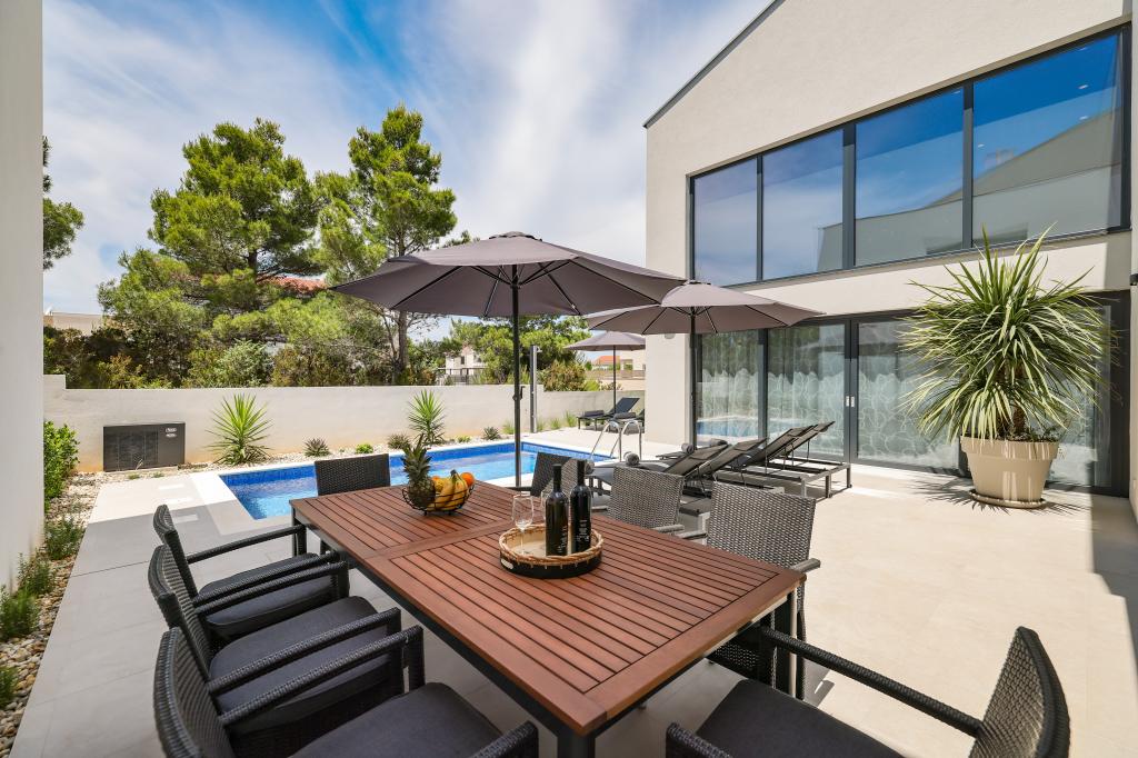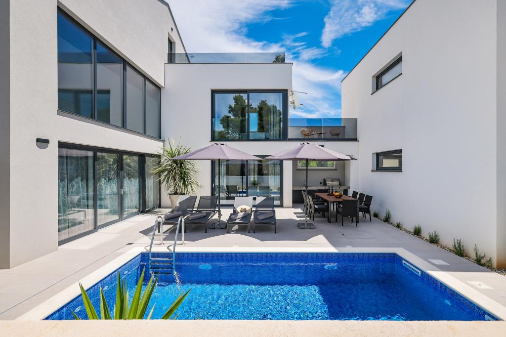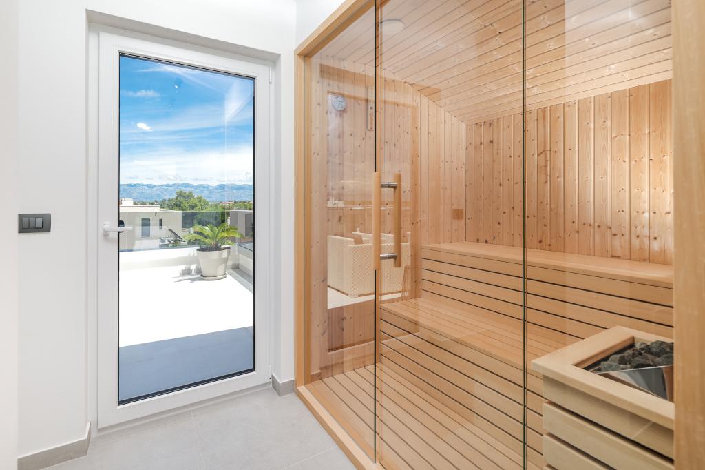Welcome to Villa Marie, a luxurious four-bedroom haven designed for relaxation and comfort. Each bedroom features its own en-suite bathroom, ensuring privacy and convenience for all guests. Step outside to discover a stunning private pool, perfect for refreshing swims under the sun, along with a sauna and jacuzzi for ultimate relaxation. The fully equipped kitchen is ideal for preparing delicious meals, whether you choose to dine indoors or on the spacious outdoor terrace. Nestled in a charming coastal town, Villa Marie offers a perfect blend of tranquility and modern amenities, making it the ideal escape for families or groups seeking a memorable seaside getaway.